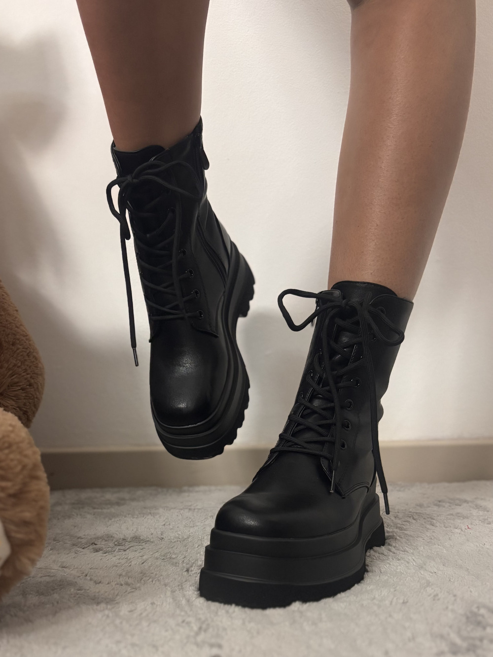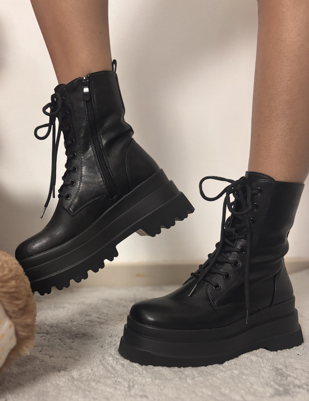 Anfibio nero con laccetti e platform.