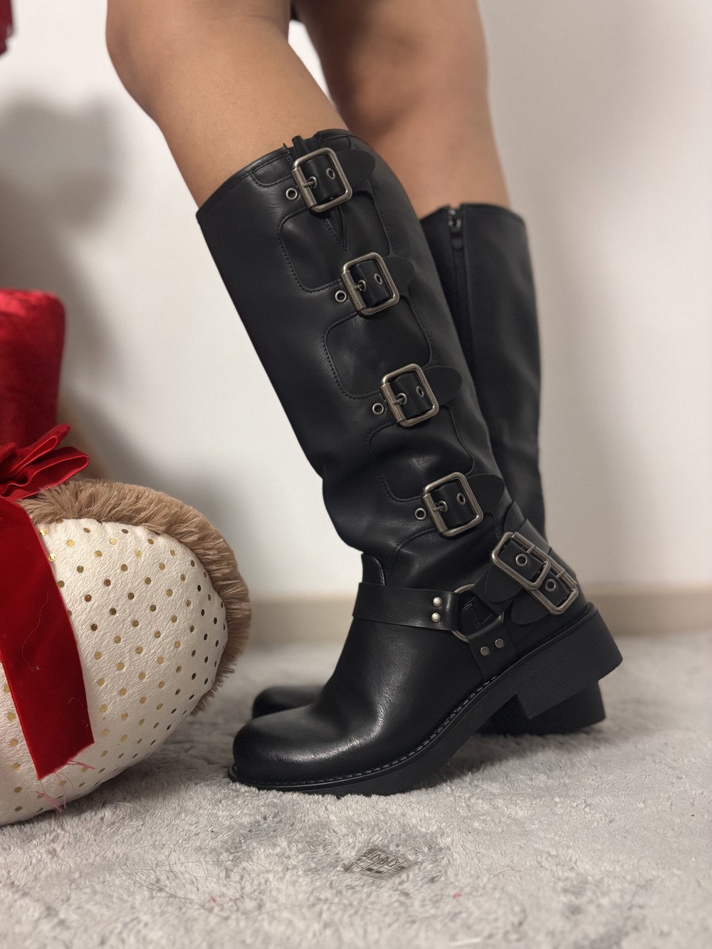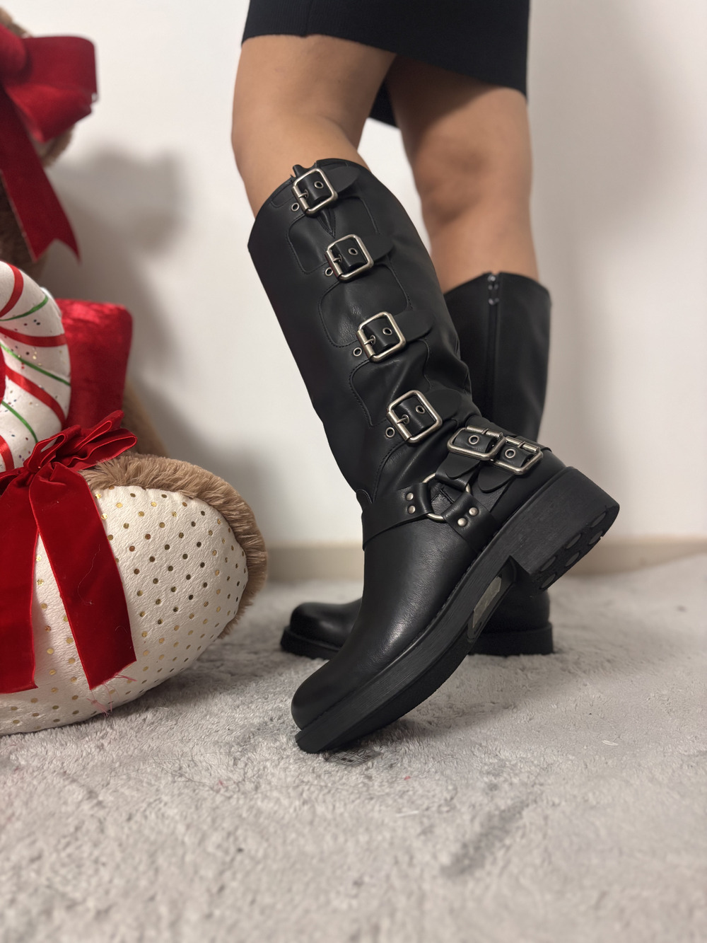 Anfibio alto modello biker con fibbie laterali argento.