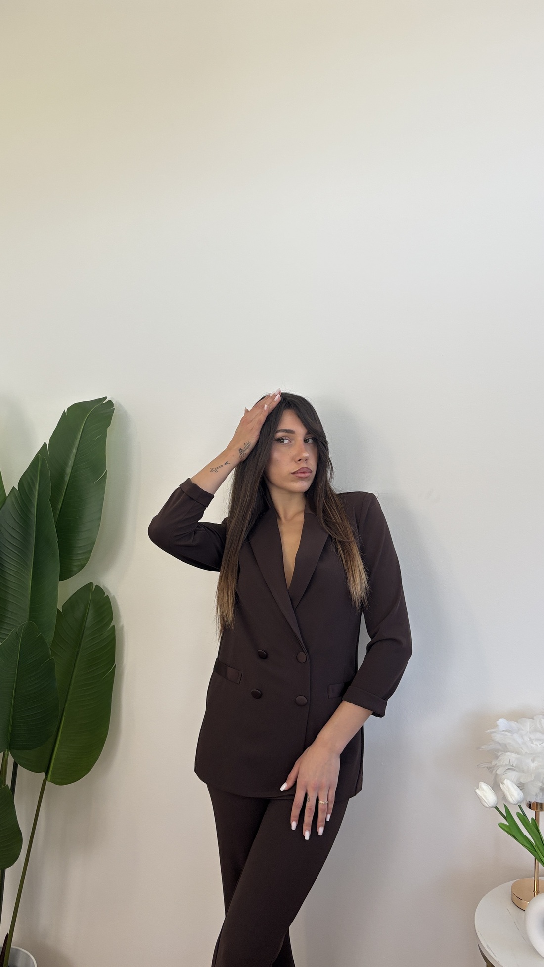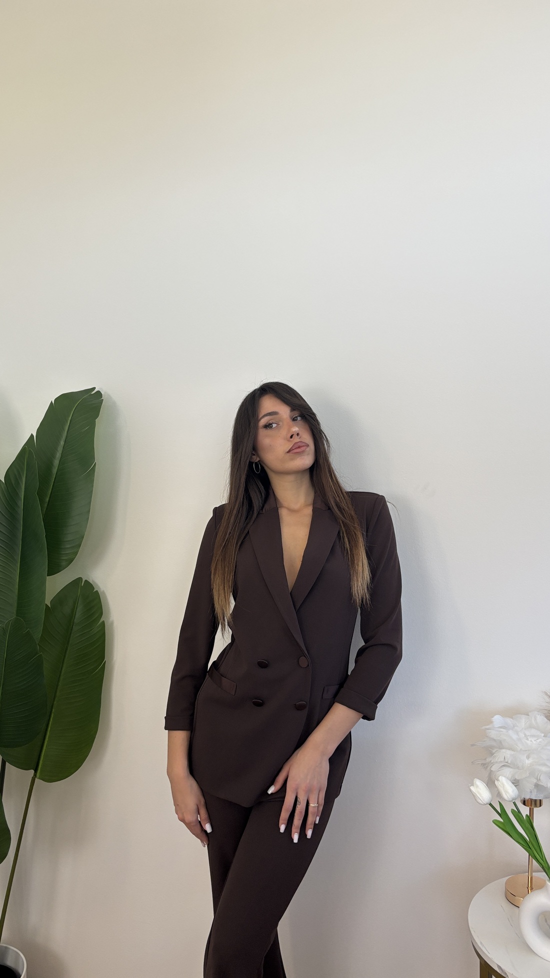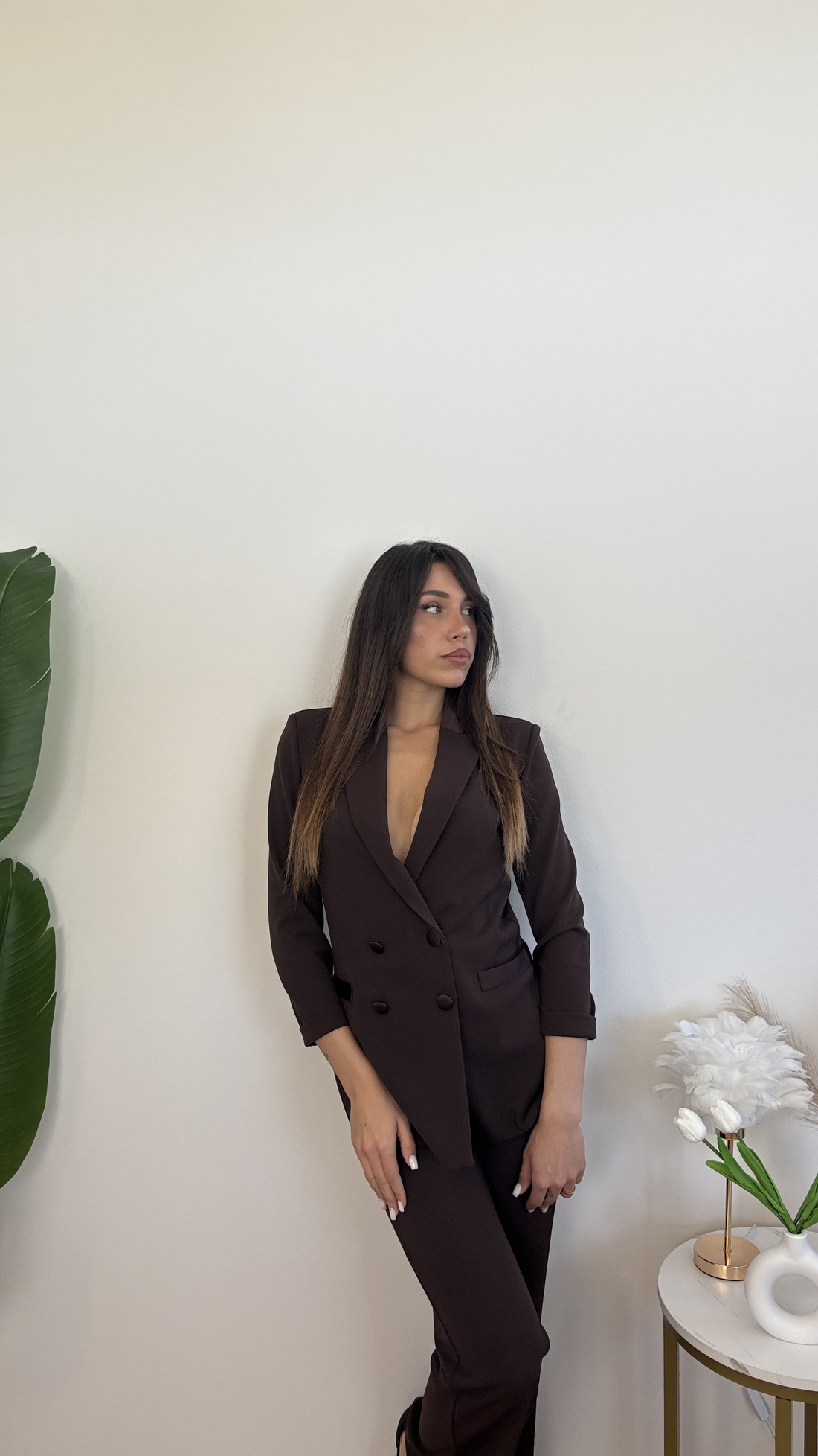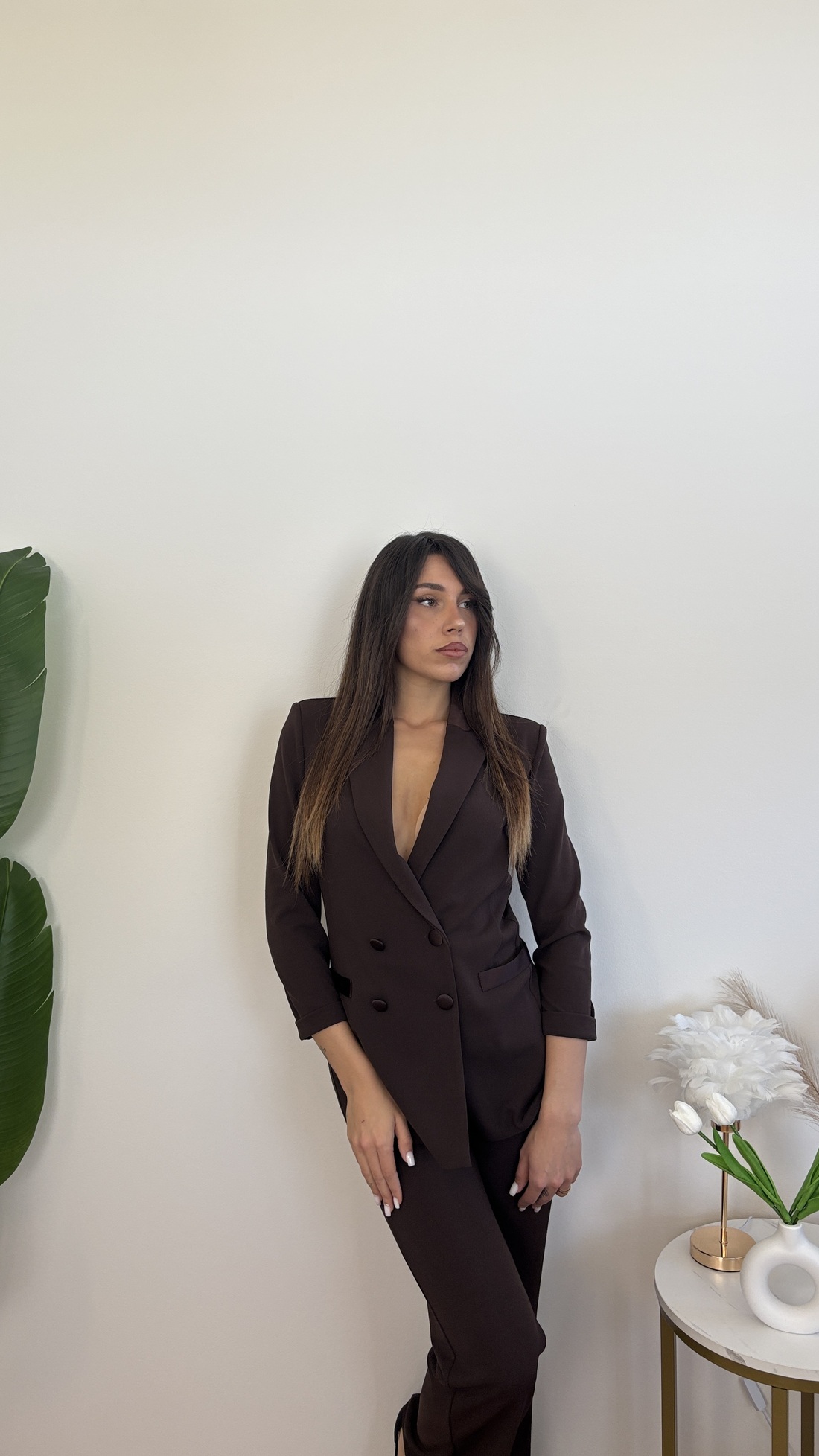 Blazer doppiopetto con dettagli in raso.