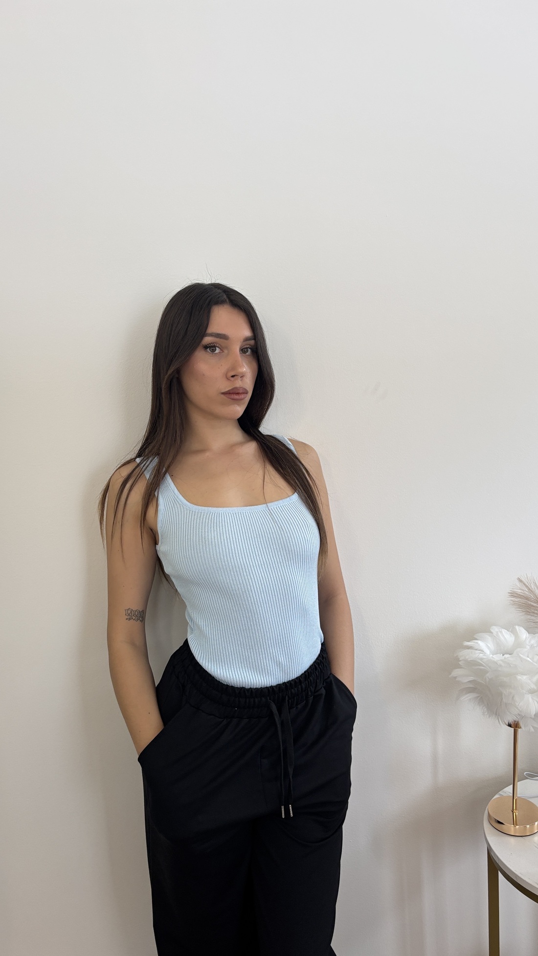 Body con spallina larga, tessuto a costine.