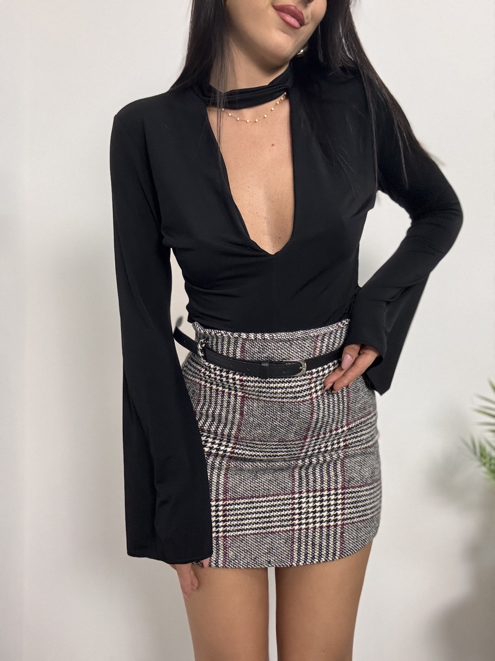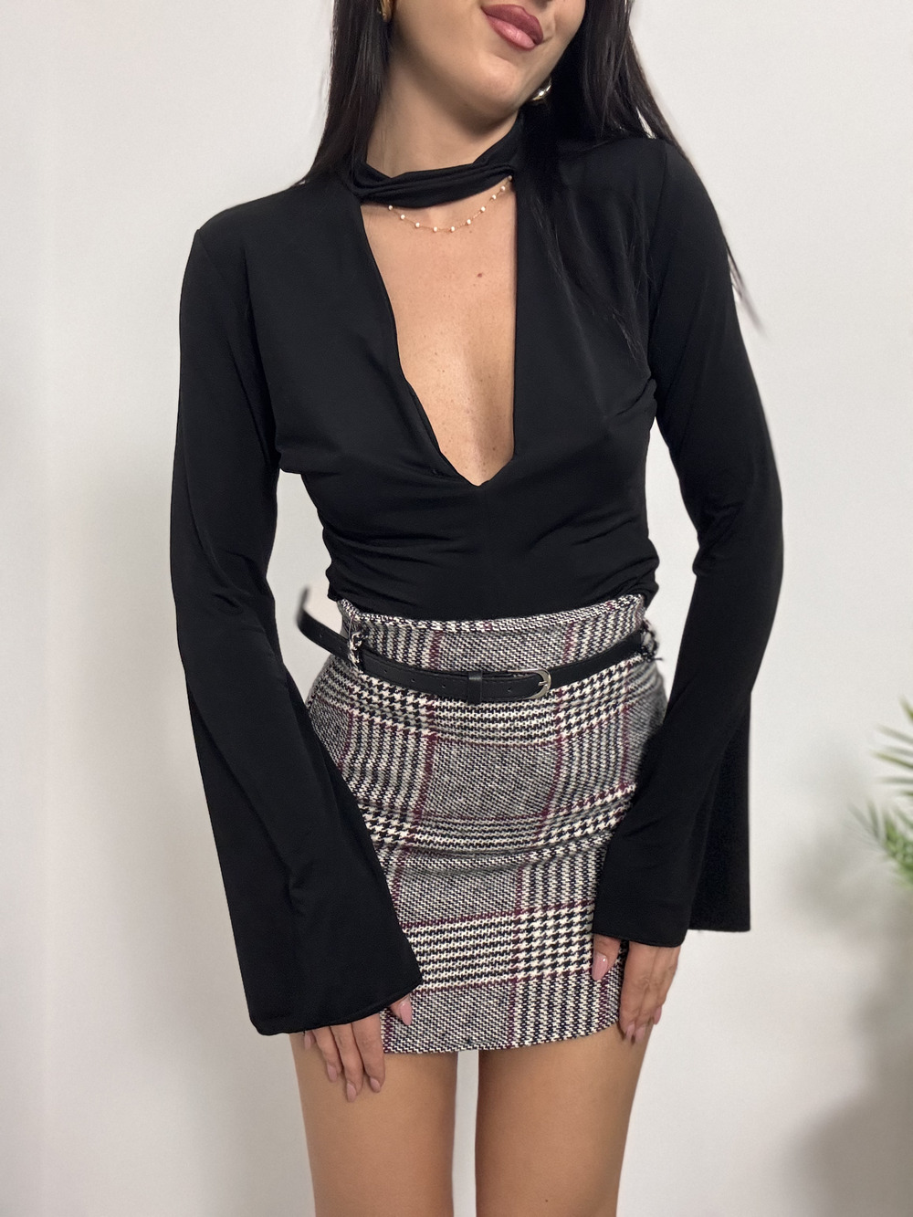 Body in lycra con scollo a v e collarino.