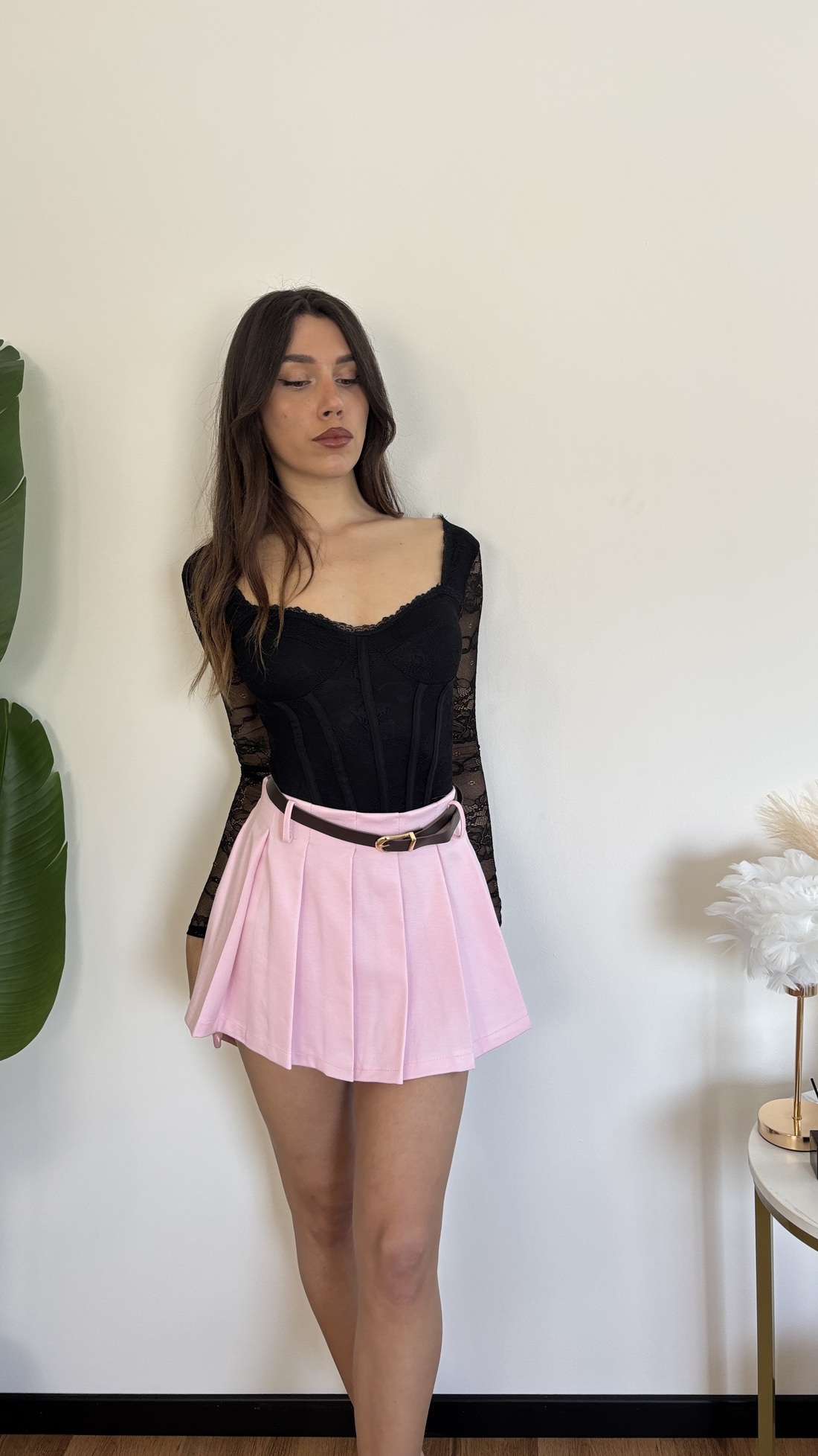 Body nero con pizzo a manica lunga.