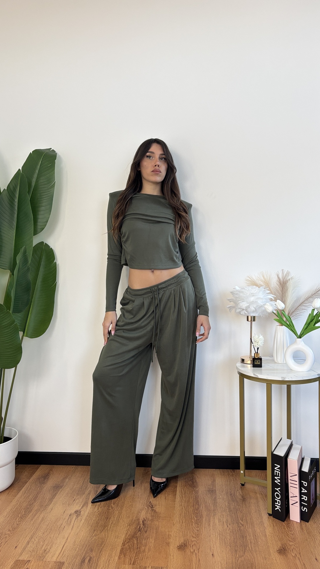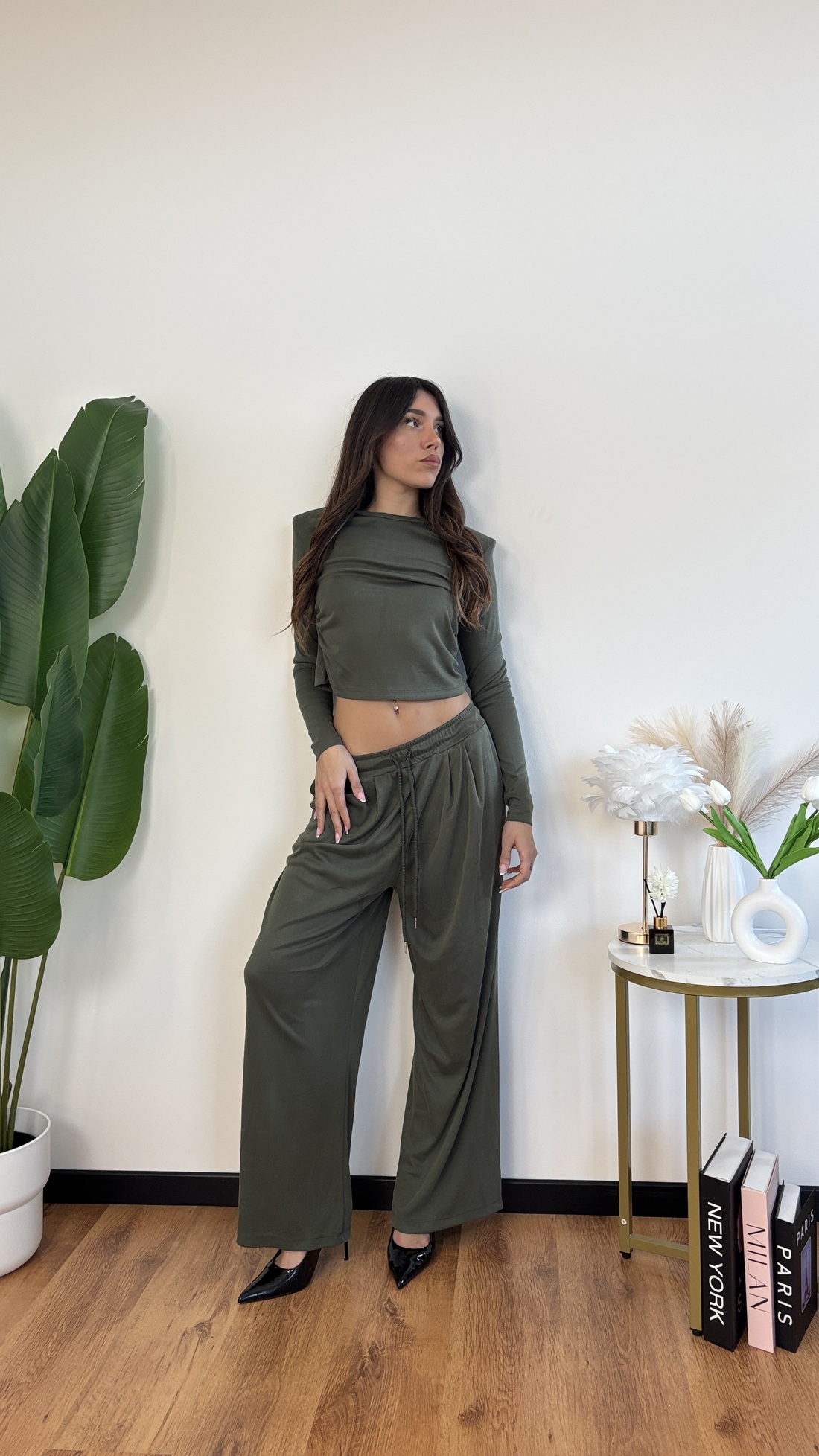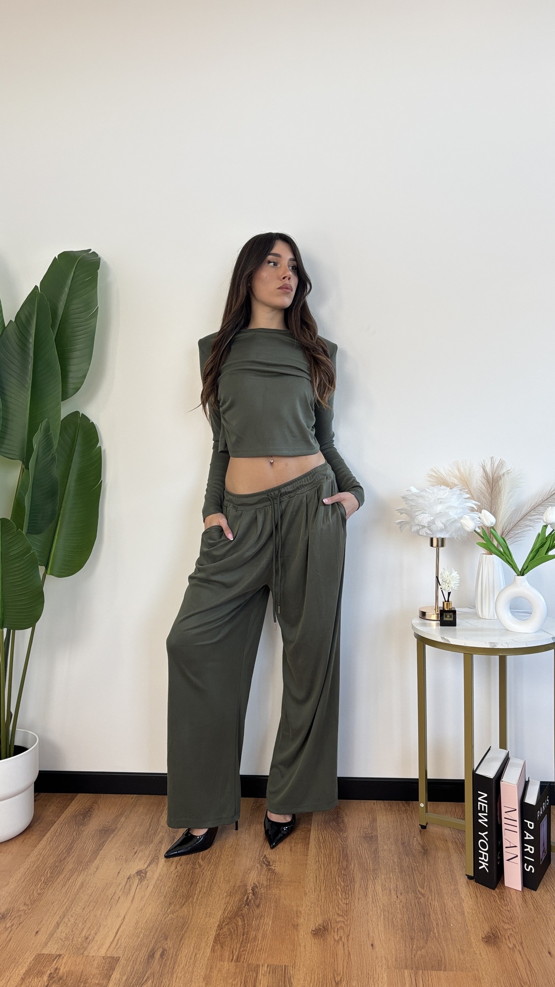 – maglia con spalline imbottite, modello leggermente arricciato lateralmente e manicotti.