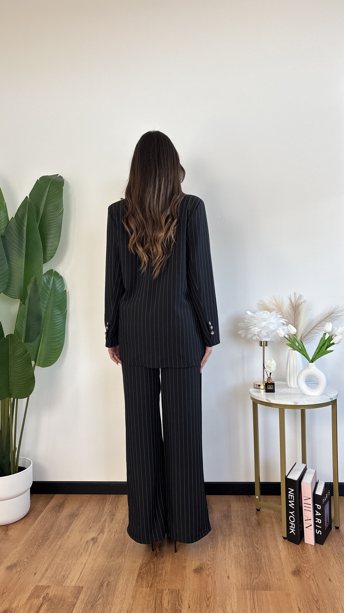 -Pantalone a palazzo con elastico dietro.