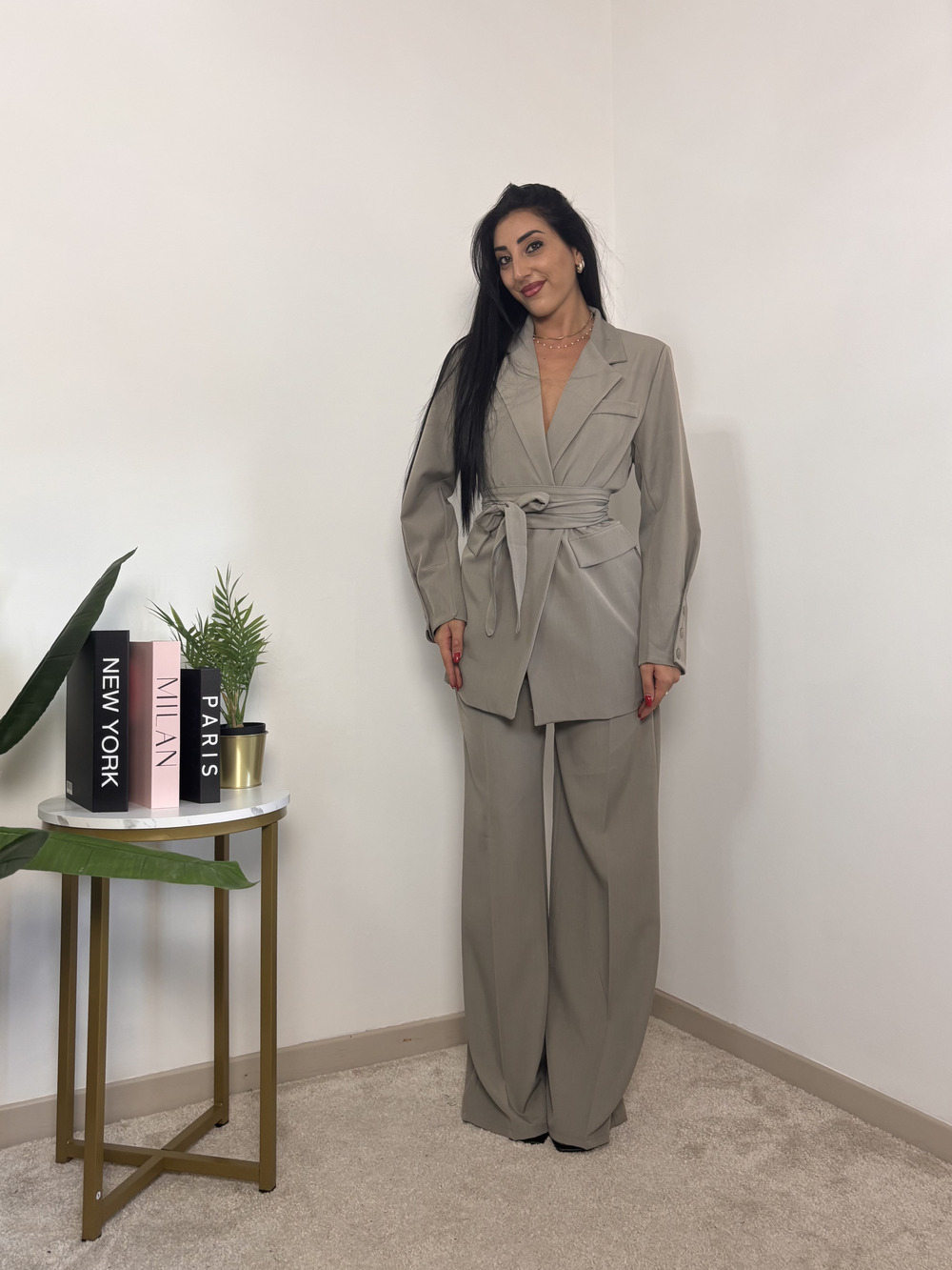 Blazer over con fusciacca in vita.