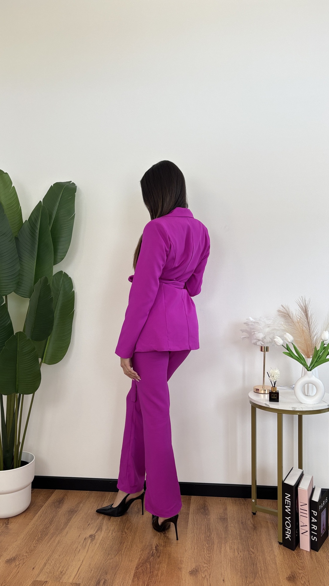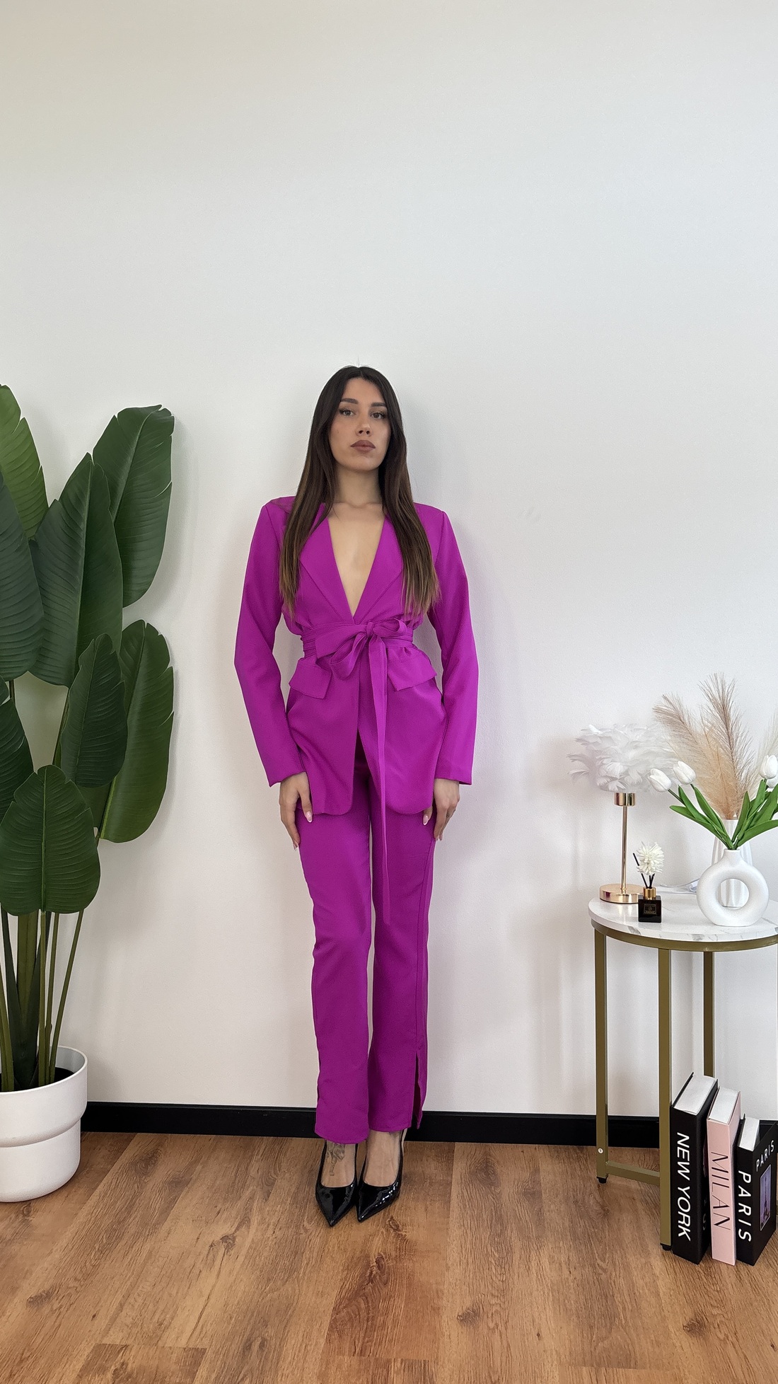 Blazer oversize monopetto con fusciacca in vita.