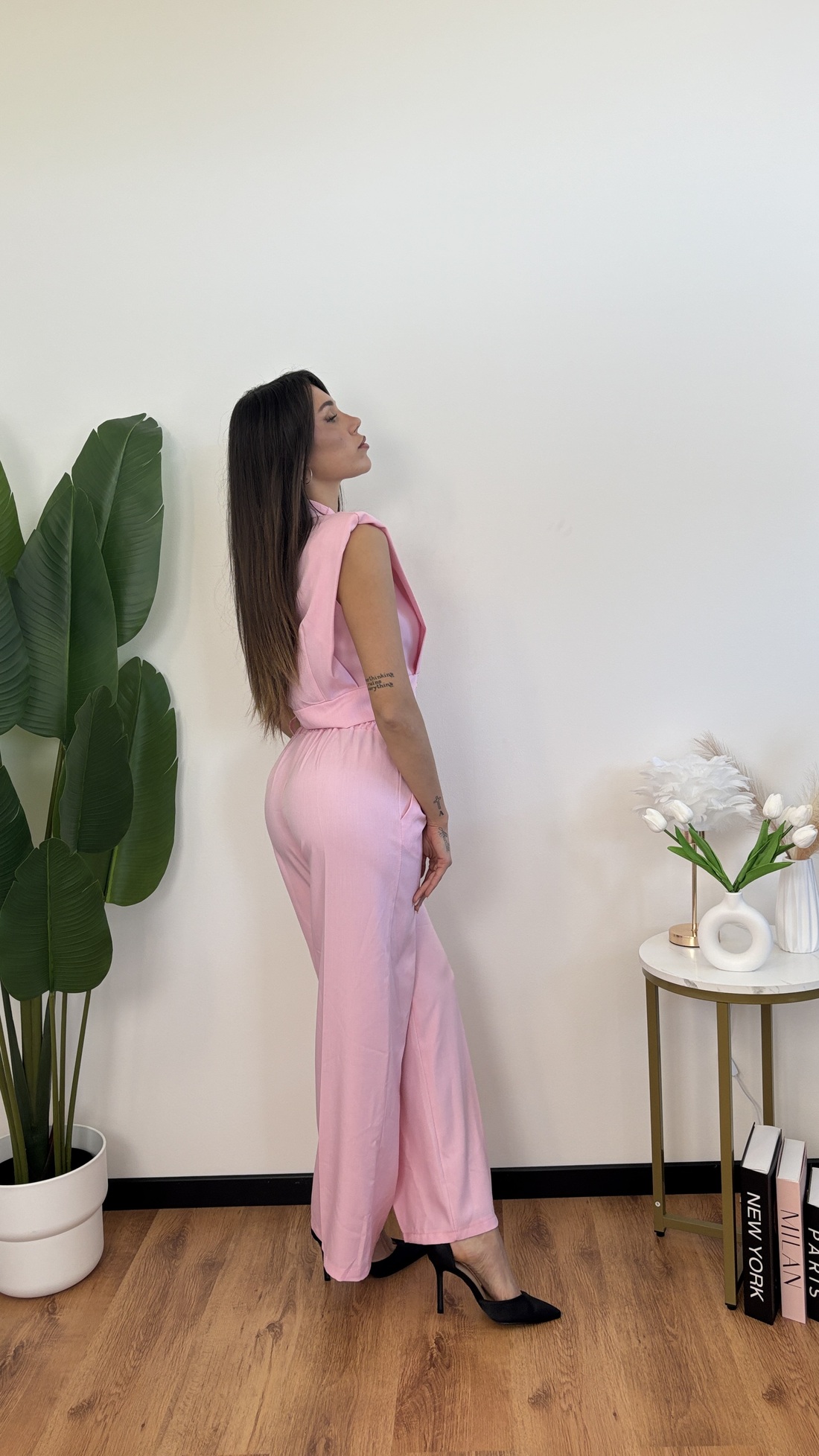 Completo a due pezzi composto da: gilet con bottoni oro e pantaloni a palazzo.