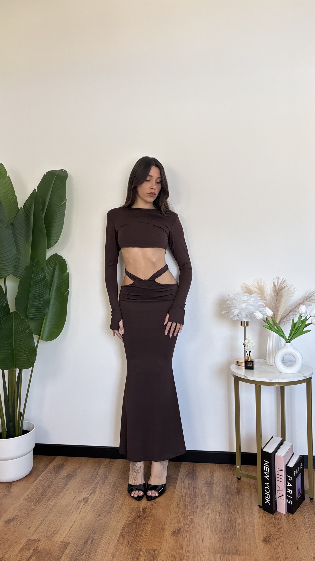 – maglia crop a manica lunga con spalline