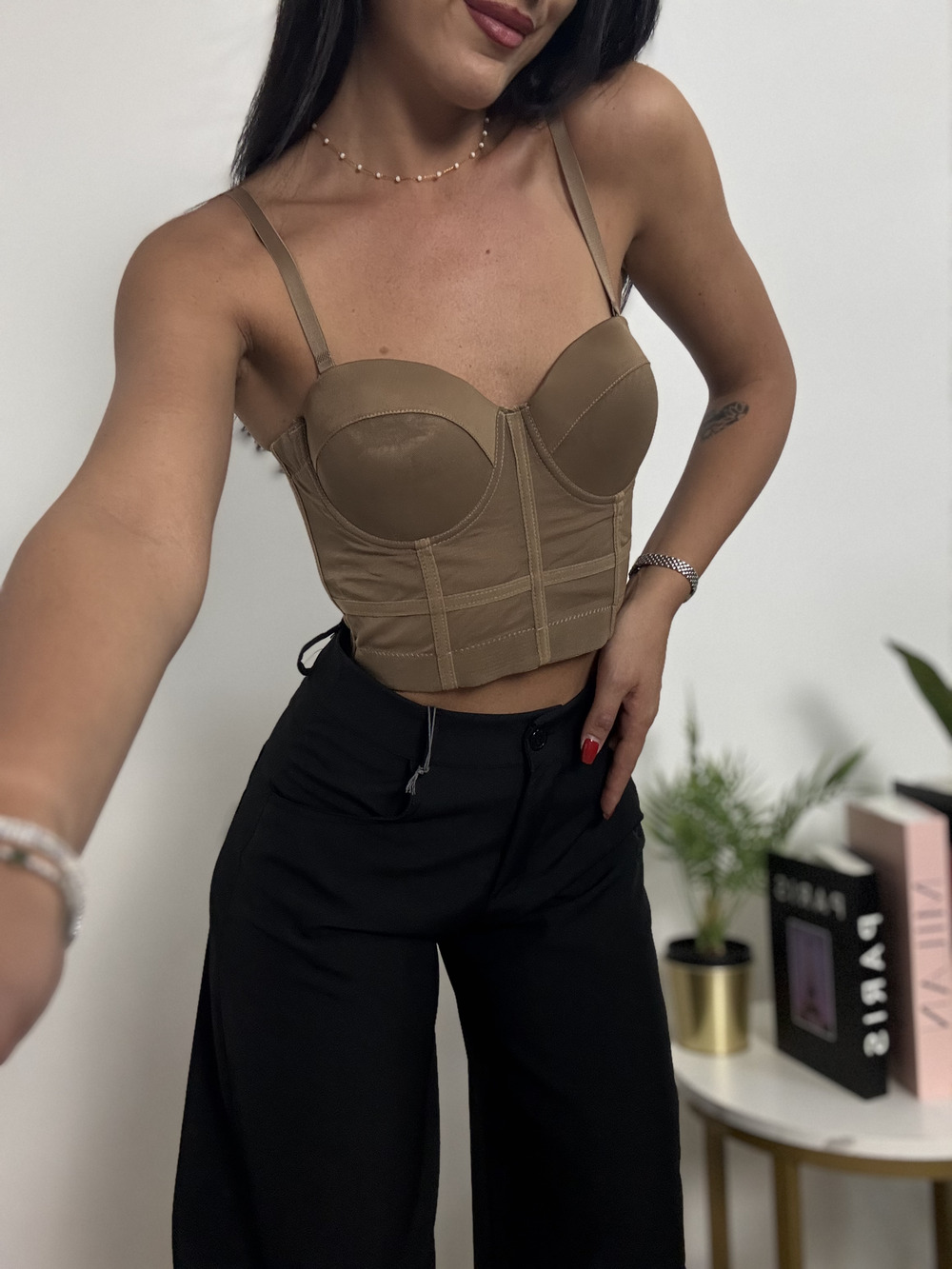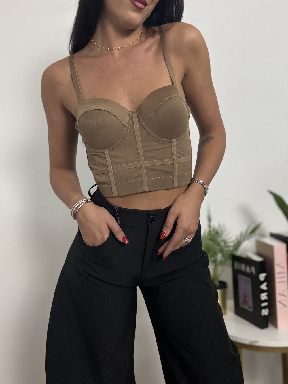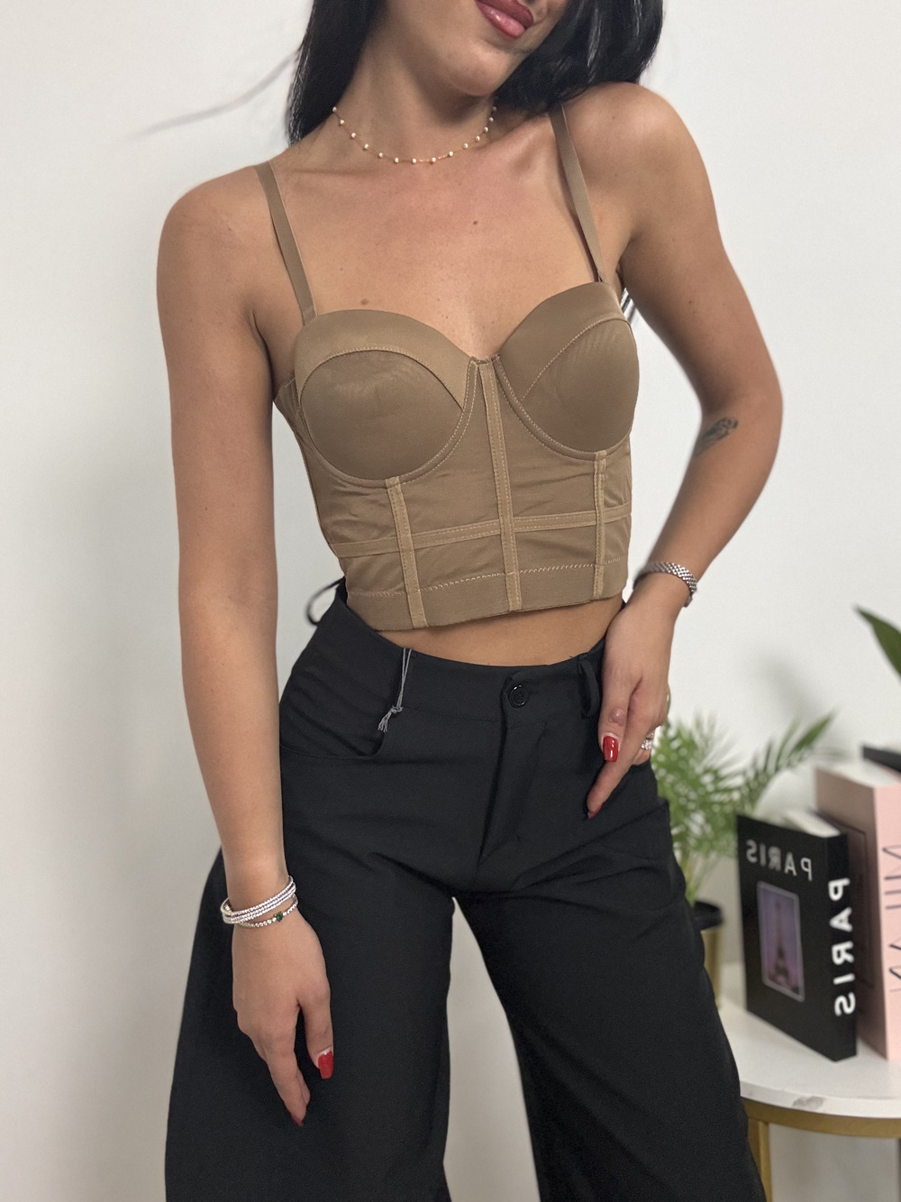 Corpetto nude con bretelle regolabili.