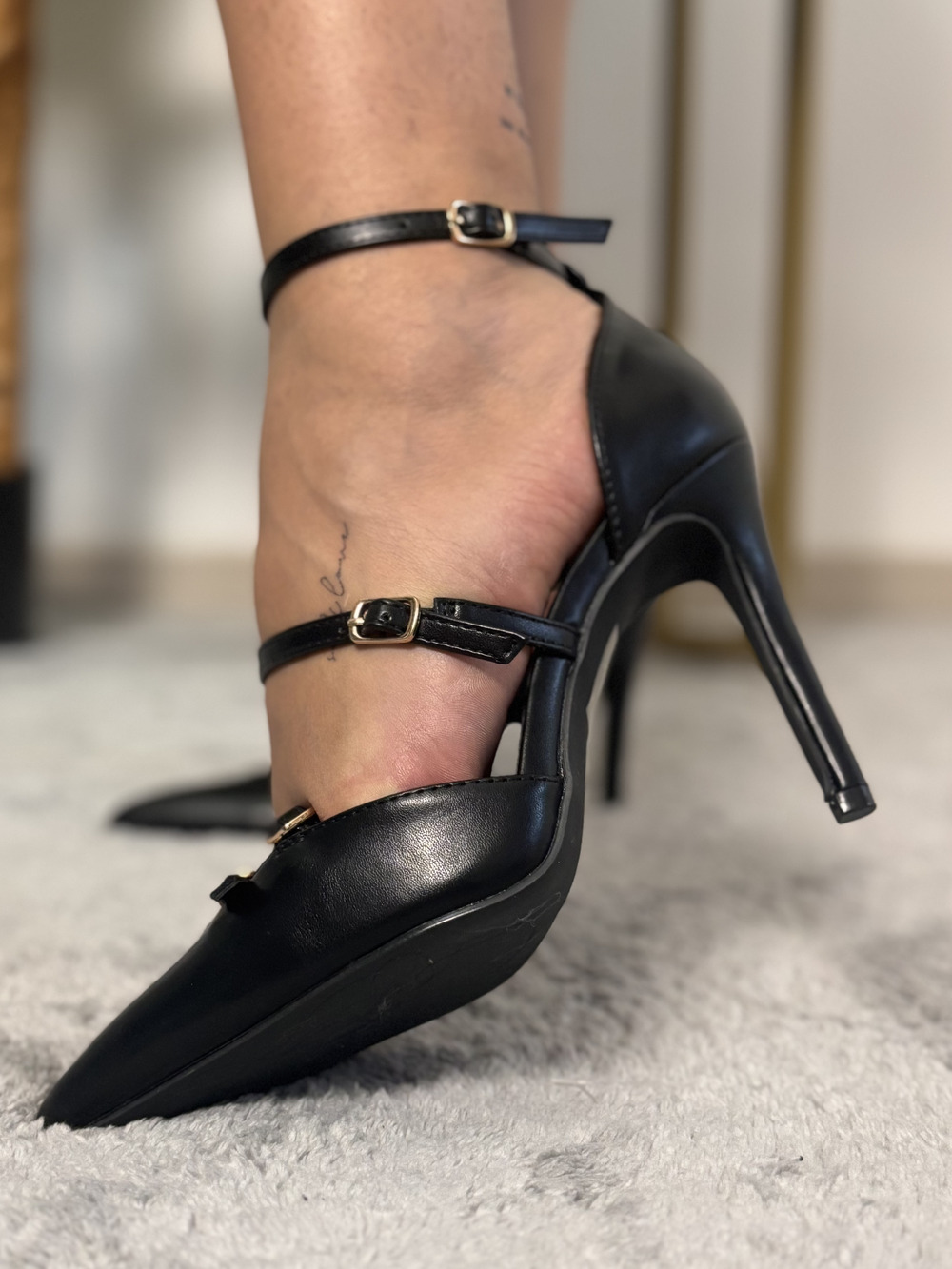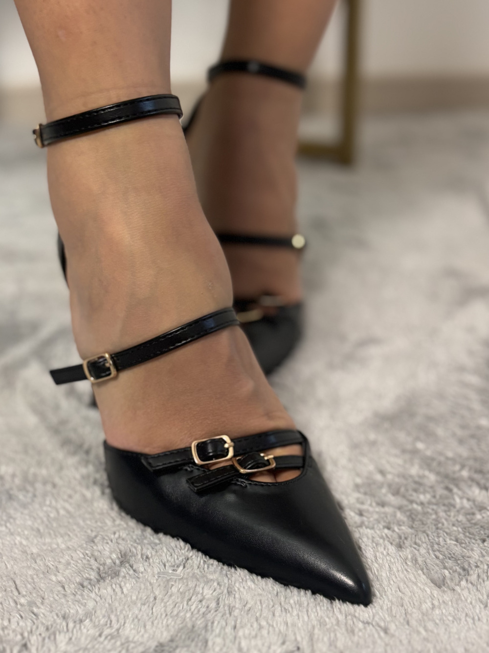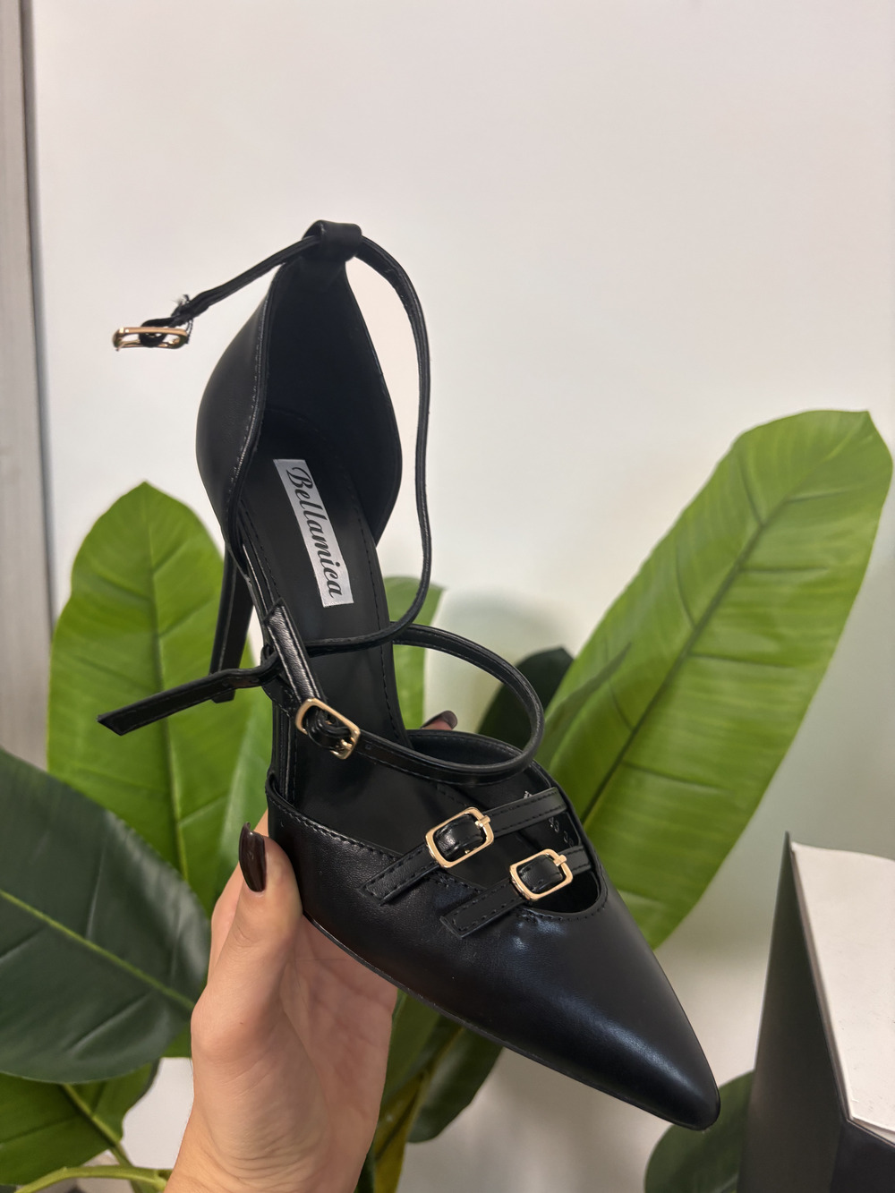 Decolletè nera in ecopelle con cinturini.