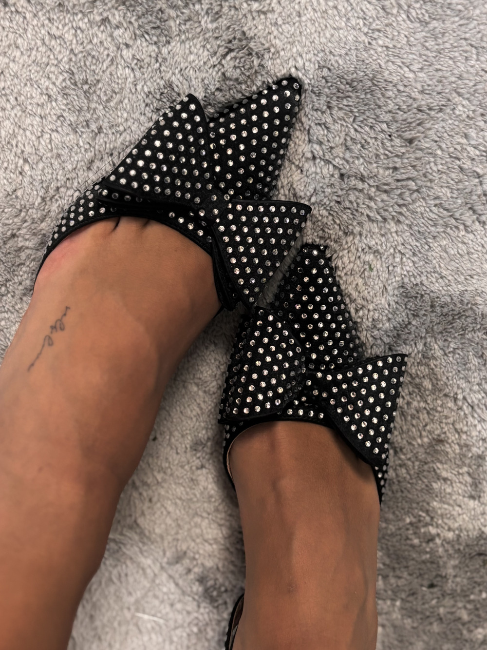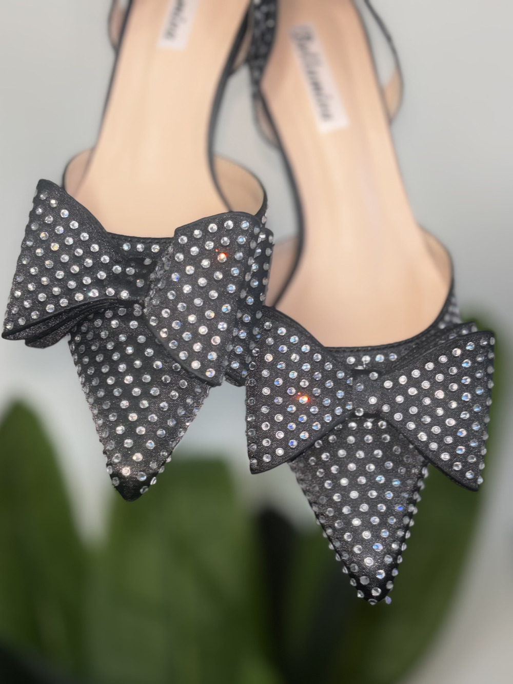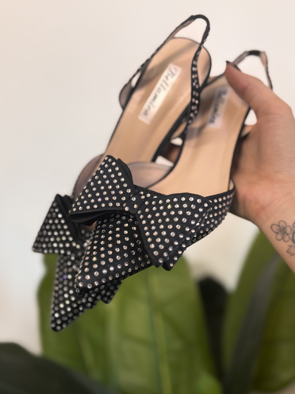 Decolletè nera con strass e fiocco, tacco 3cm
