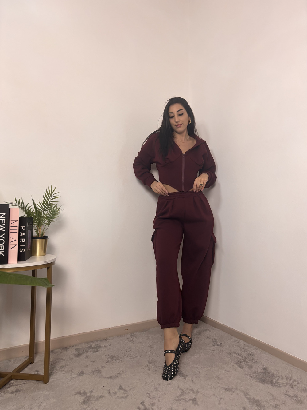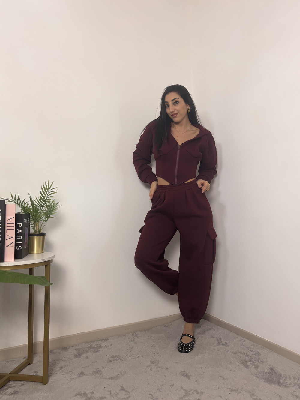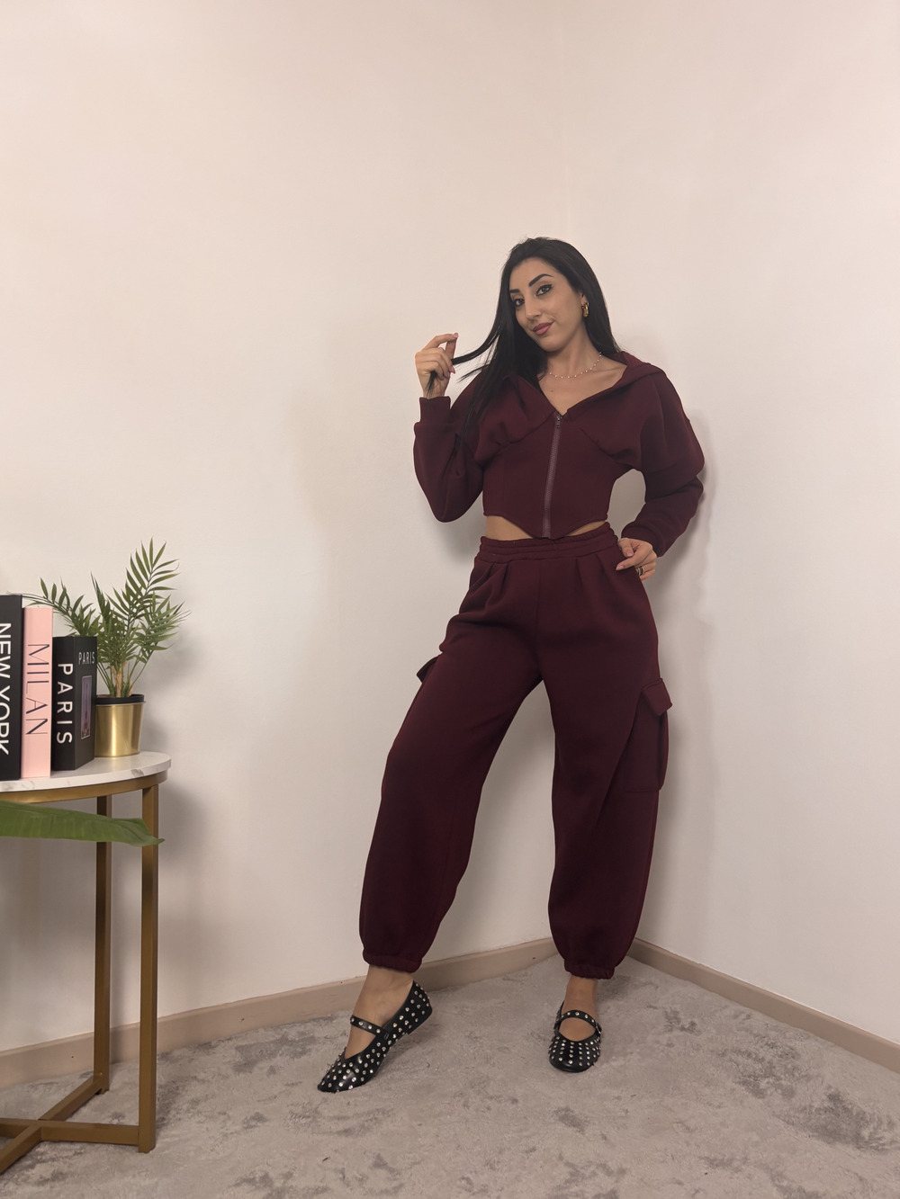 Felpa crop con cappuccio, felpata internamente.