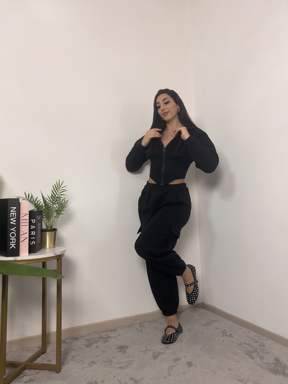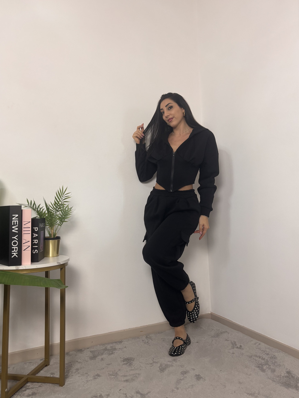 Felpa crop con cappuccio, felpata internamente.