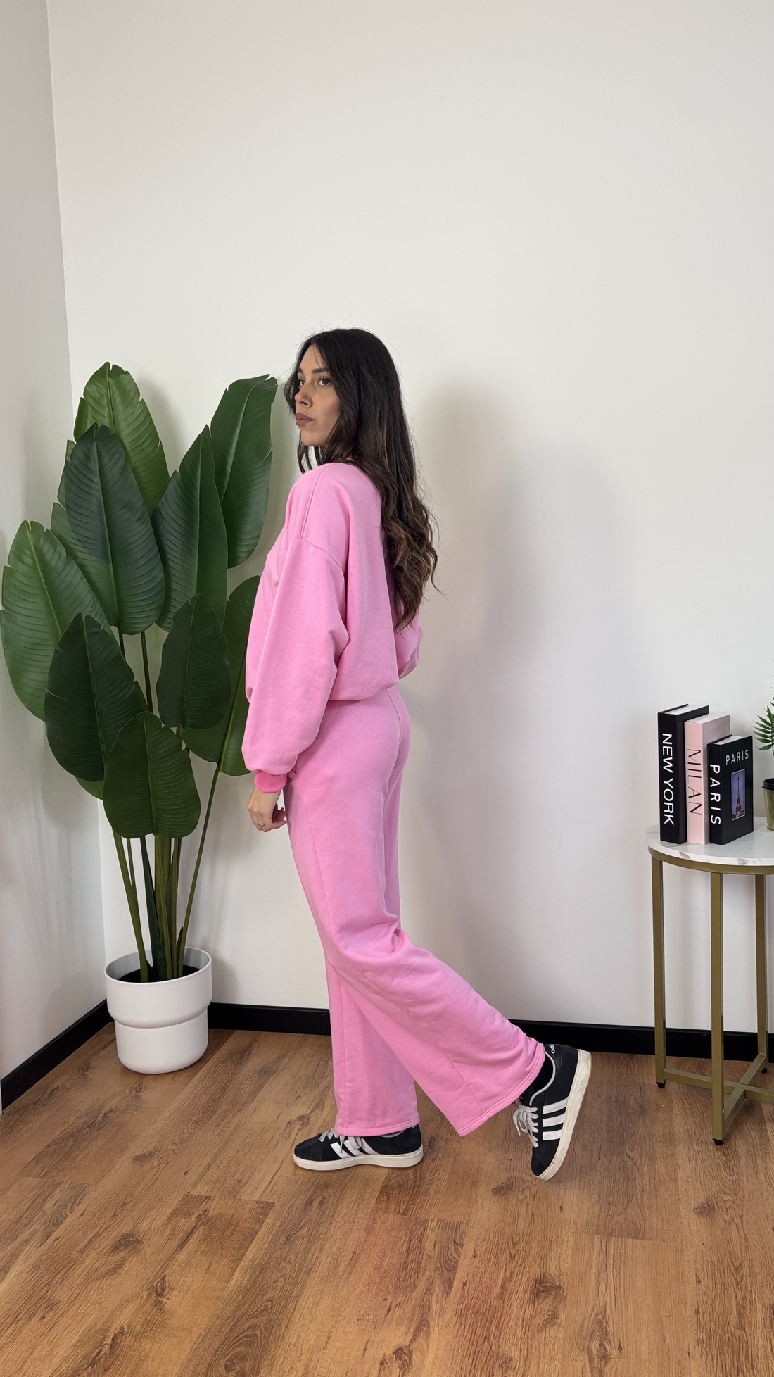 Felpa in tuta con iterno garzato, modello over size.