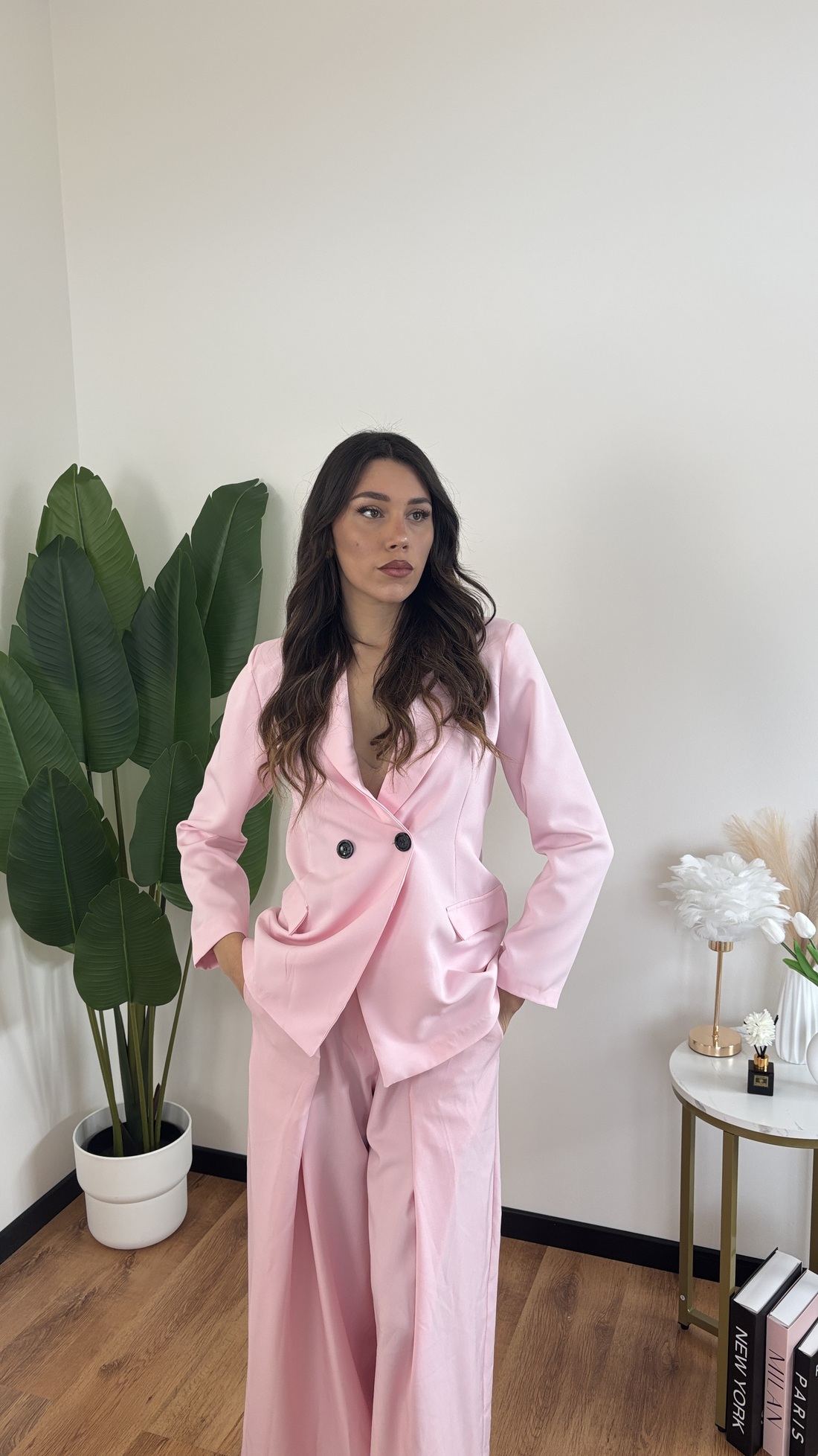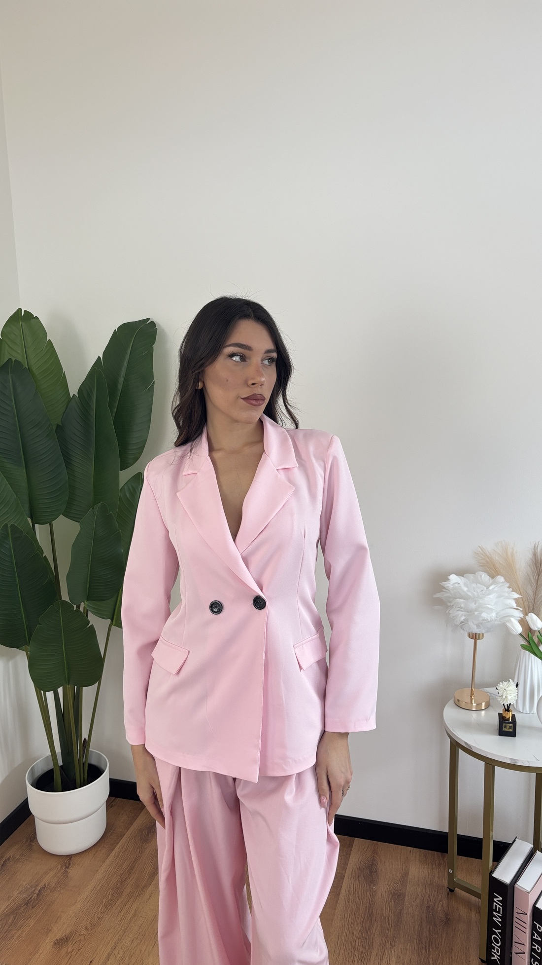 Giacca leggermente stroncata, modello doppiopetto.