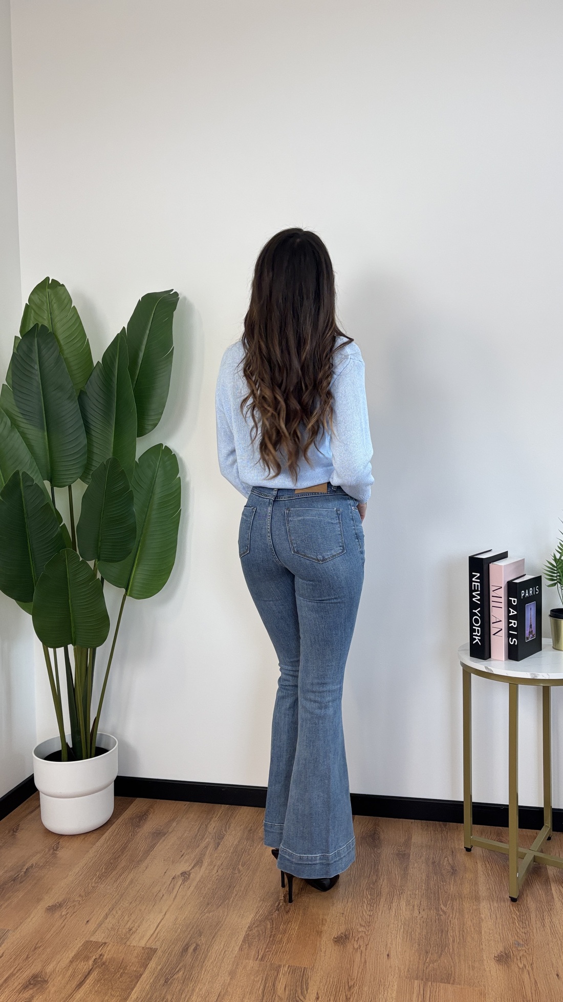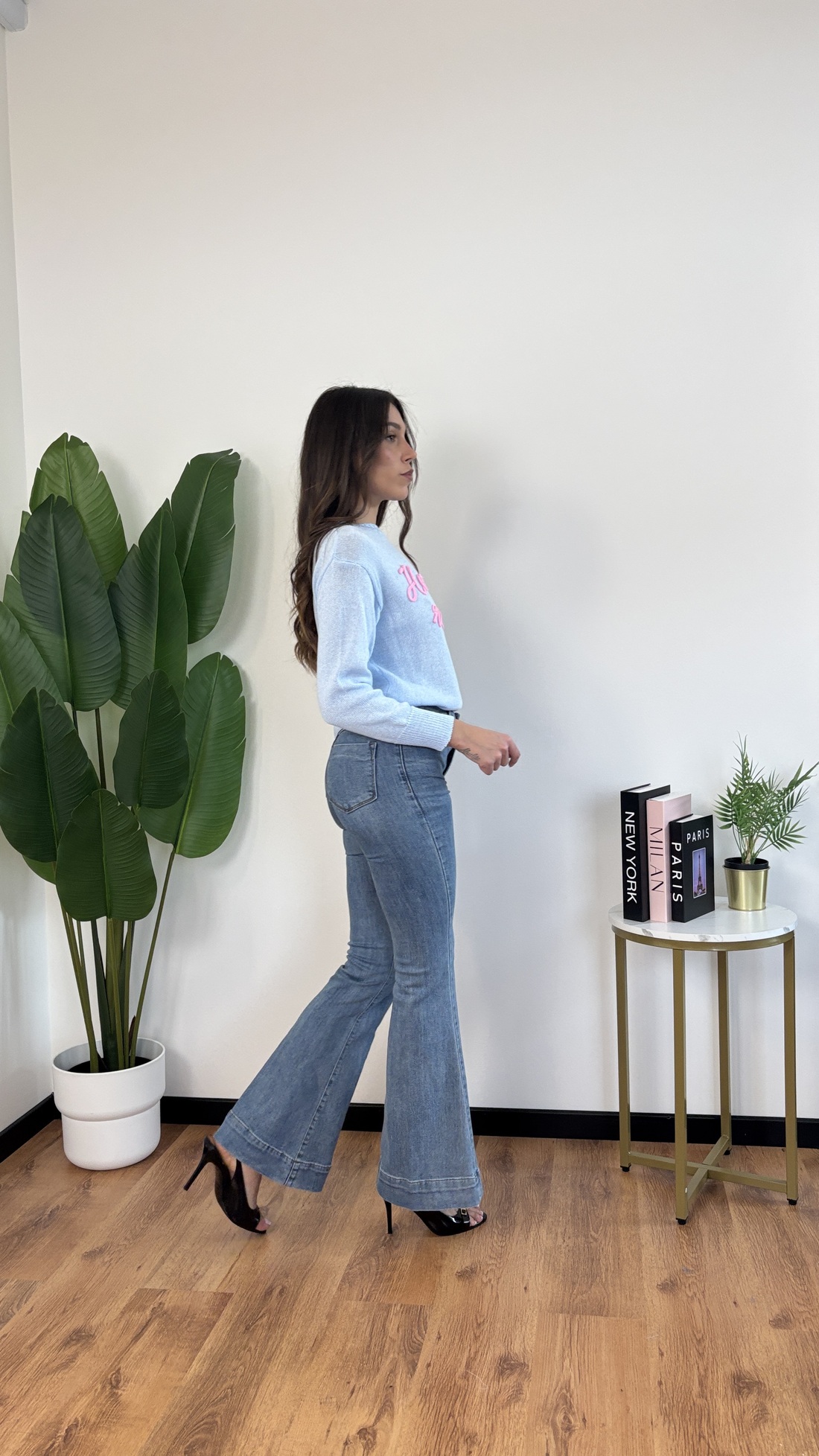 Jeans in denim chiaro modello a zampa.