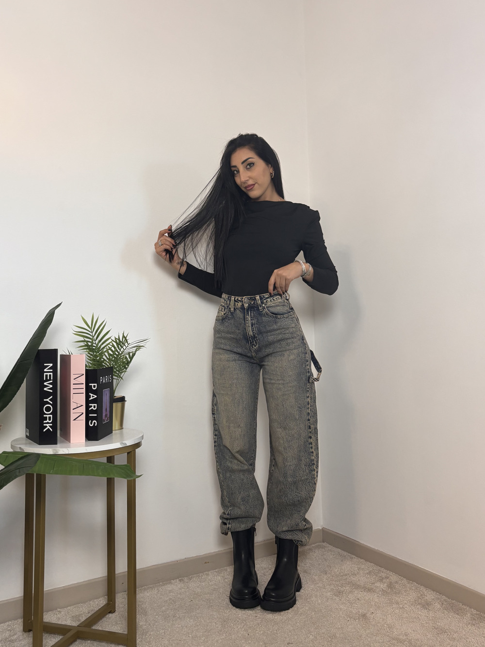 jeans baggy, lavaggio chiaro, elasticizzato.