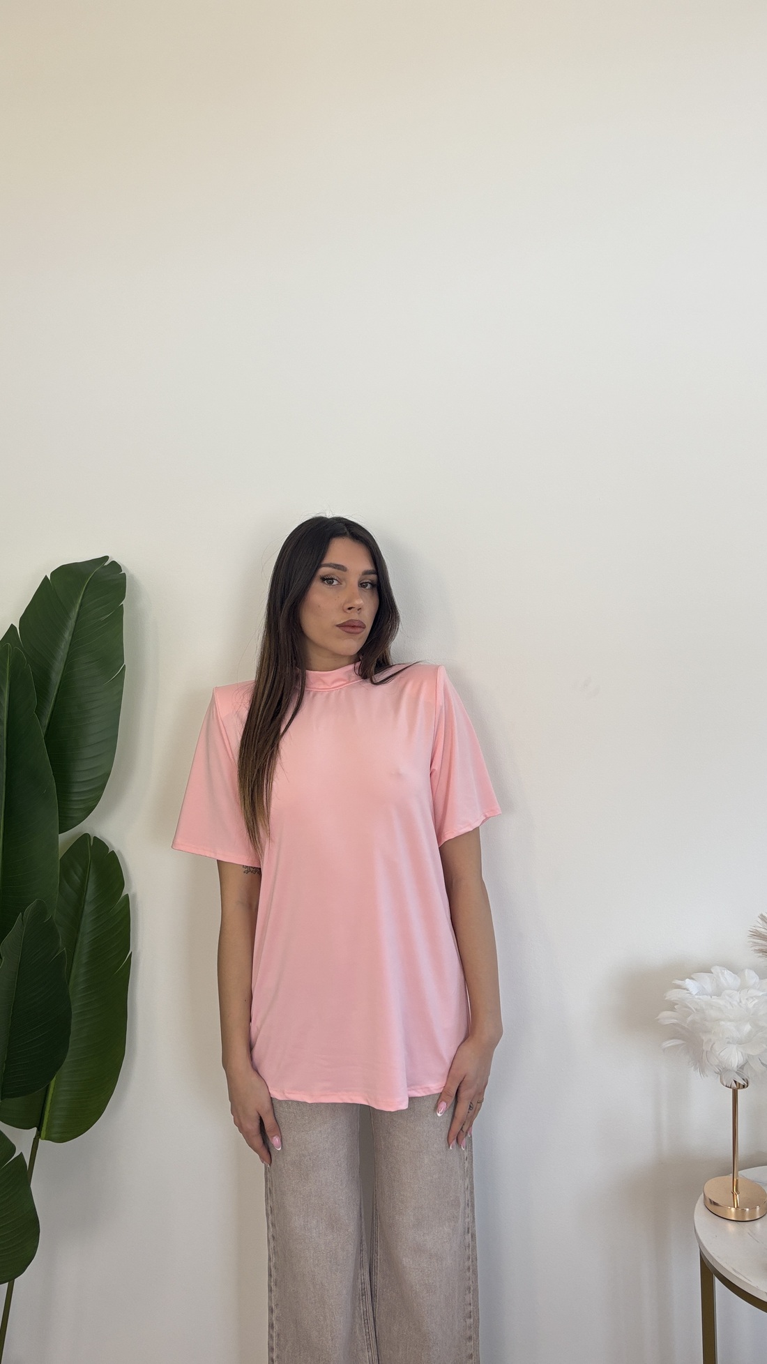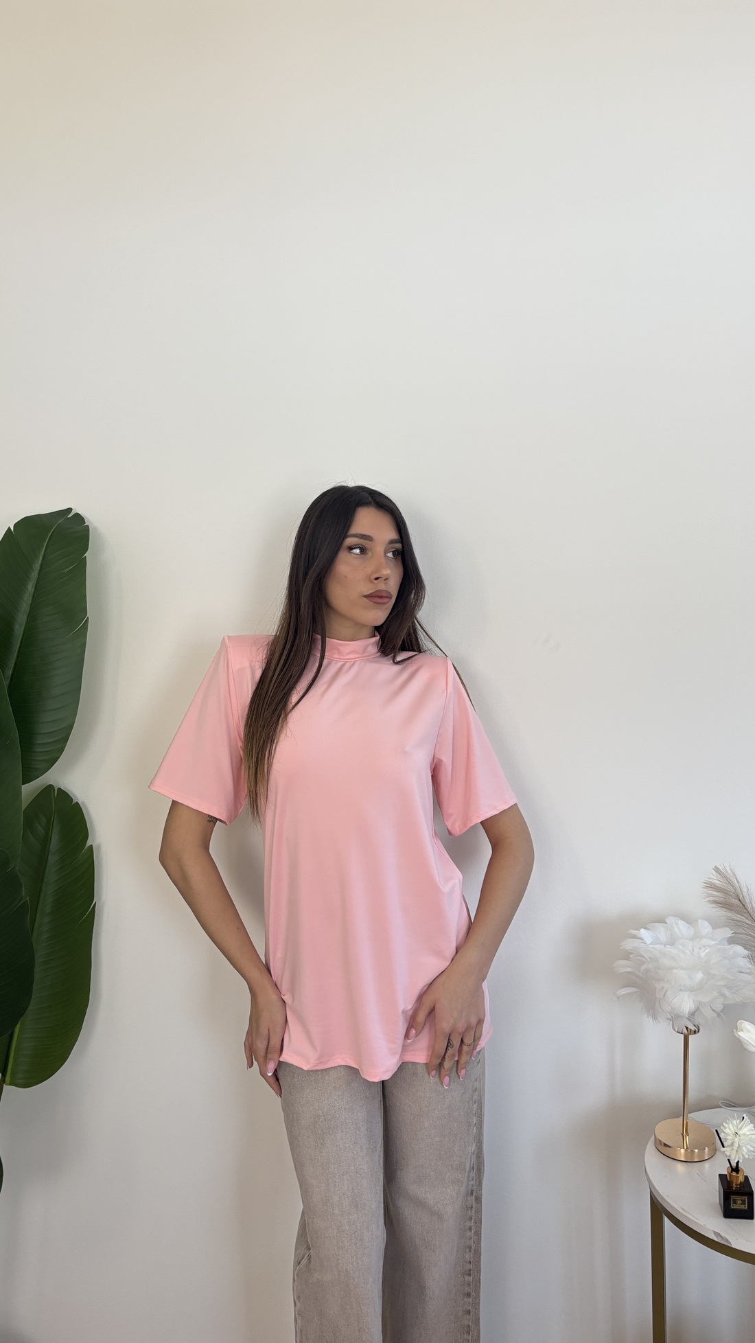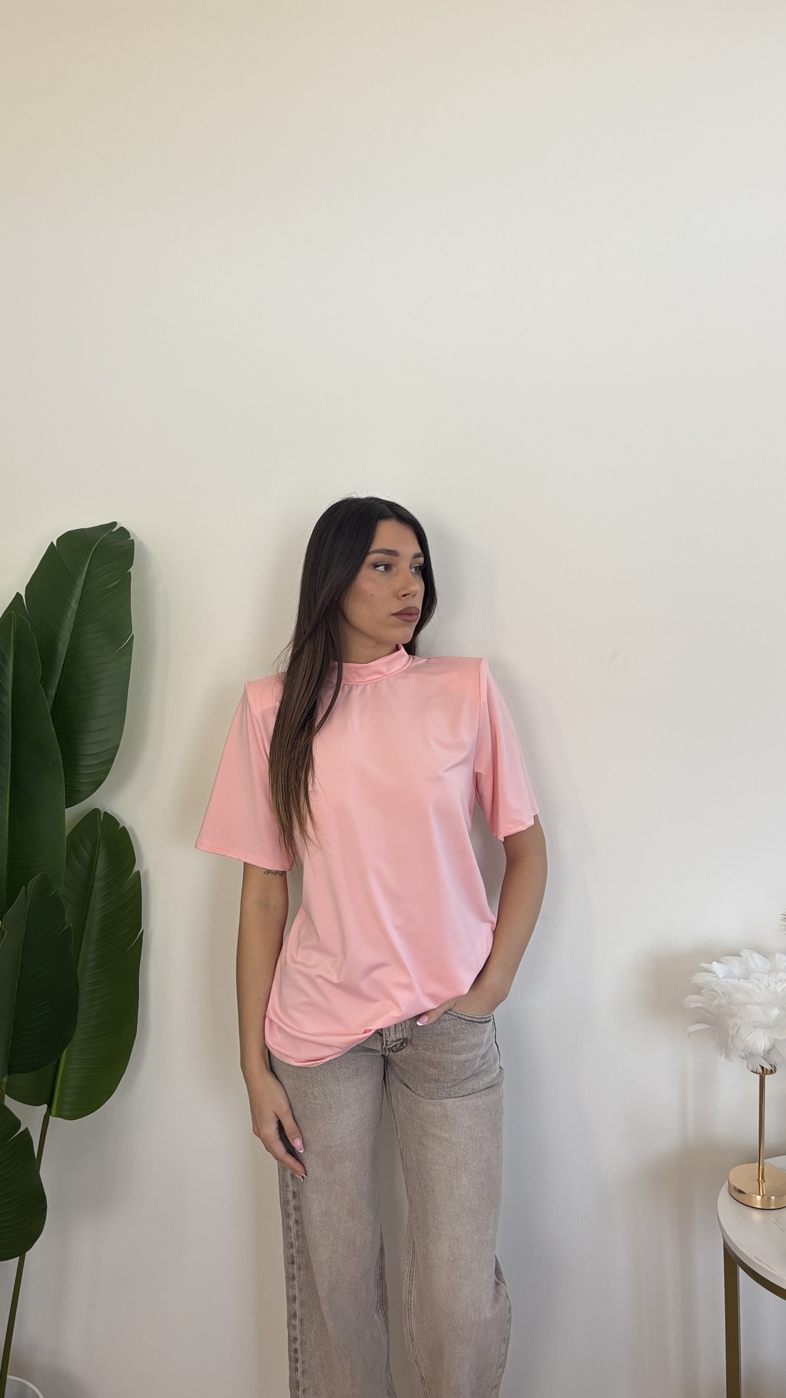 Maxi t-shirt con colletto e spalline imbottite.