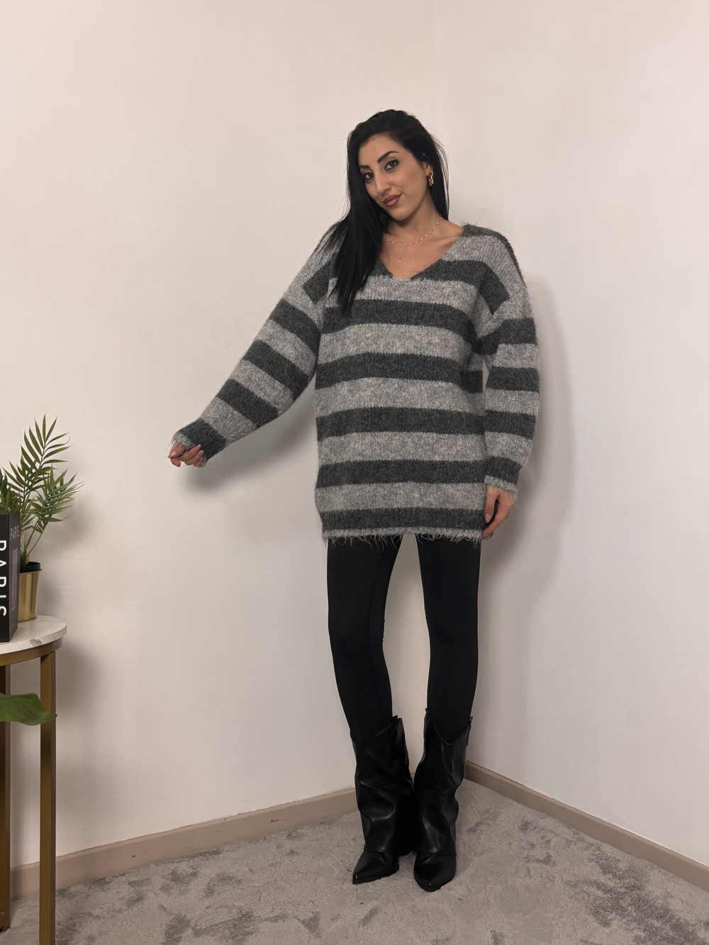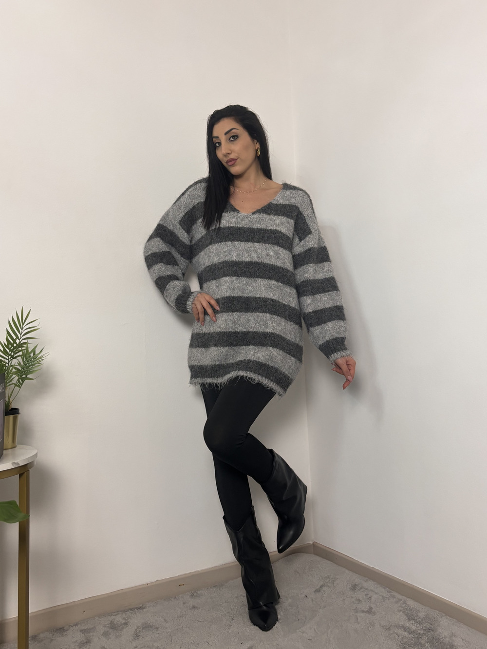Maglione oversize con stampa a righe.