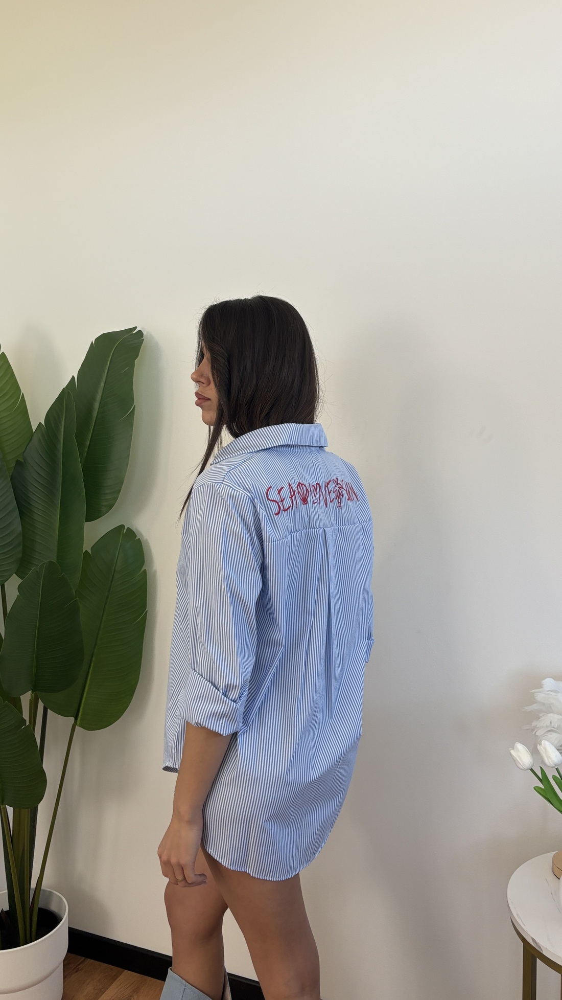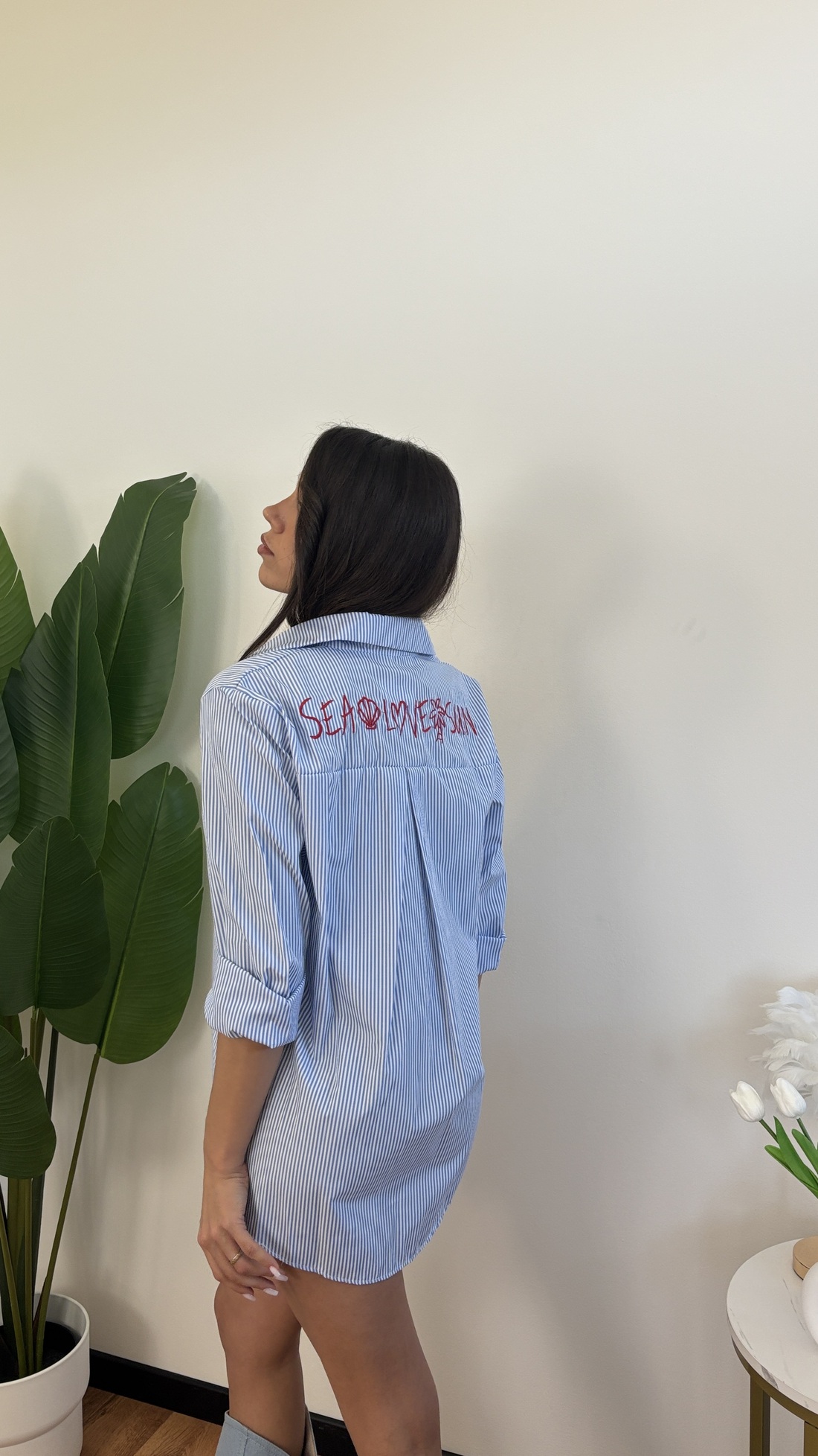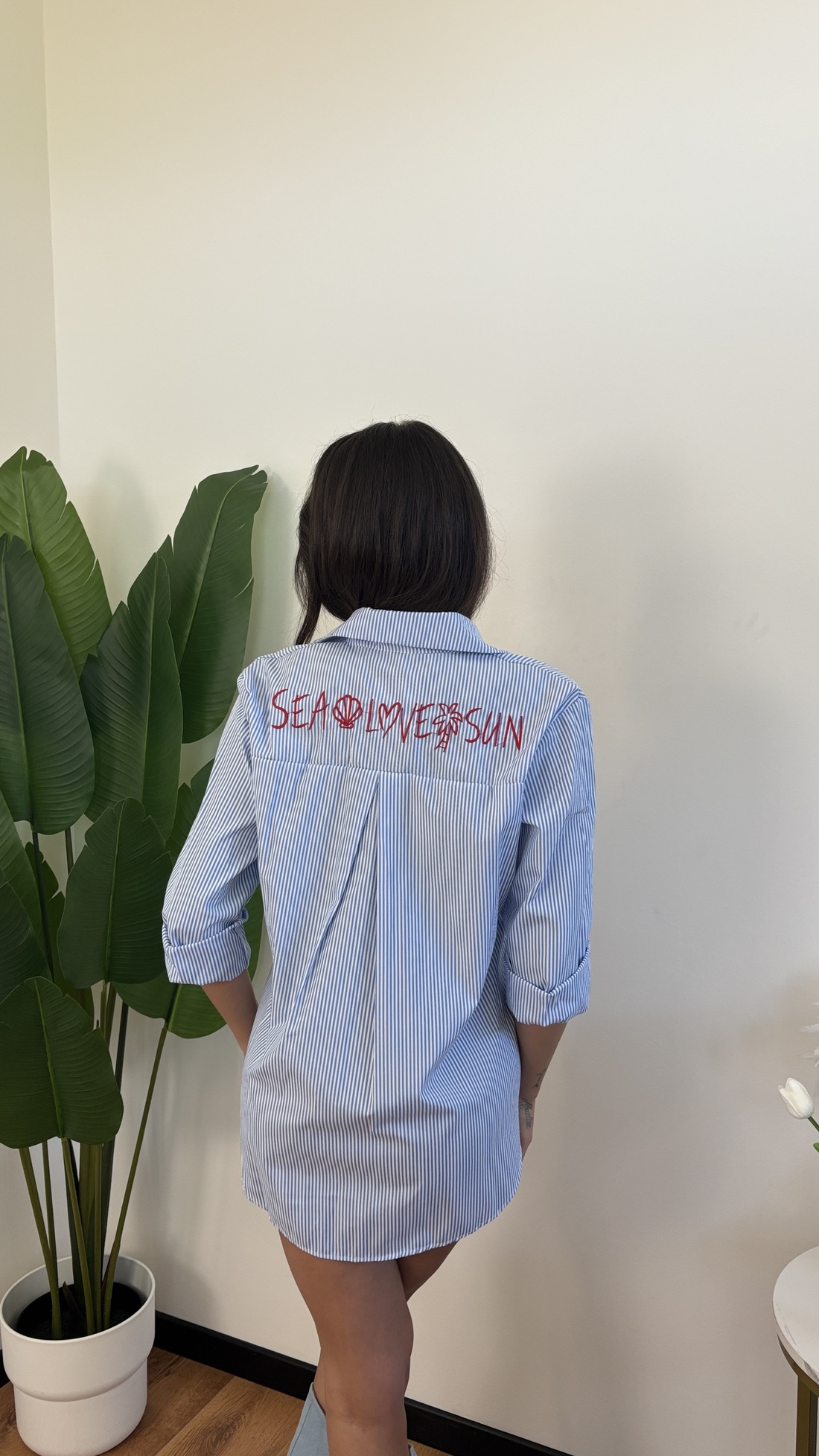 Maxi camicia con scritta “sea, love, sun”