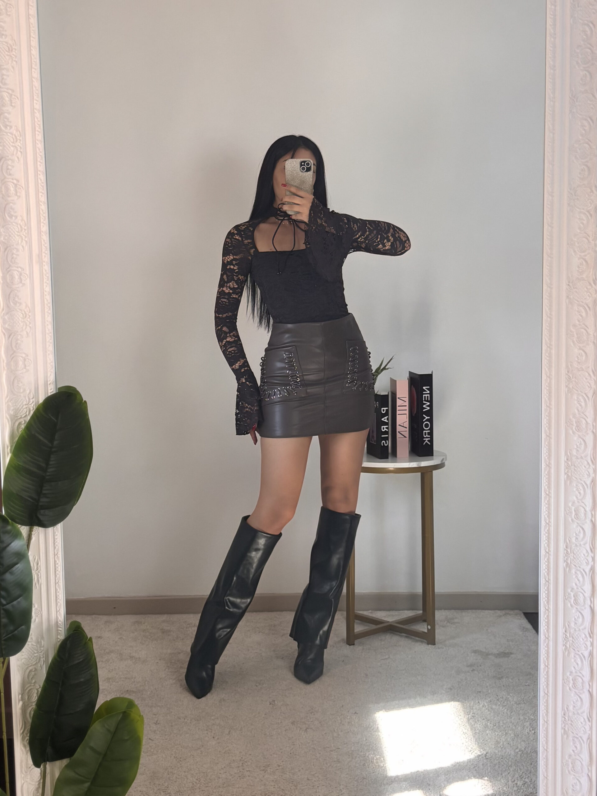 Mini in ecopelle con tasche laterali, elasticizzata.