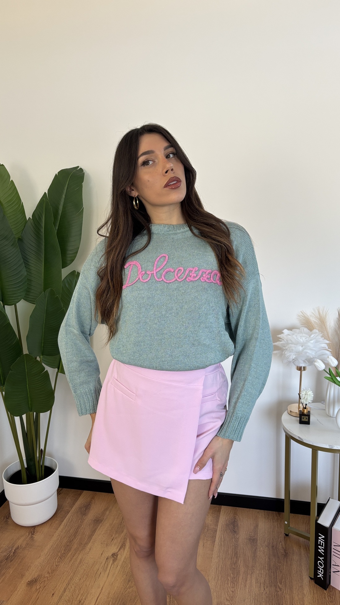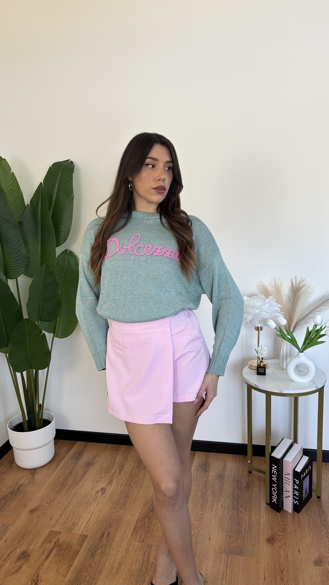 Mini a pantaloncino a portafoglio, con elastico dietro.