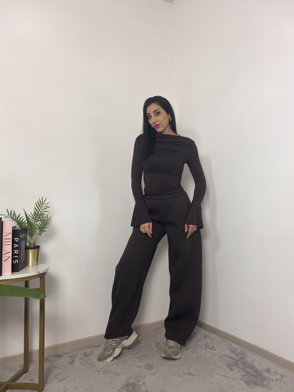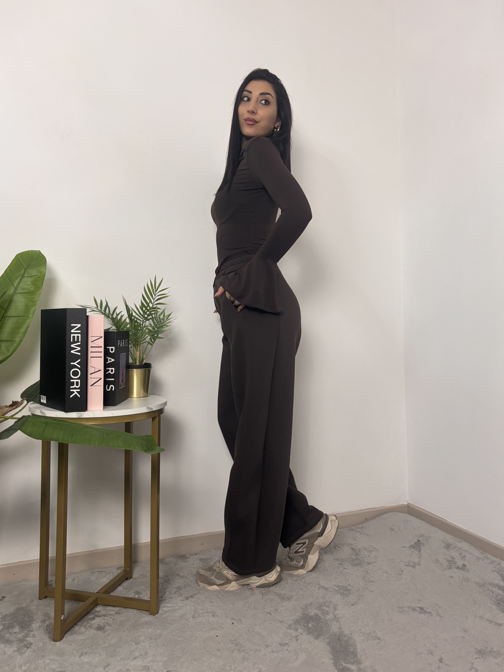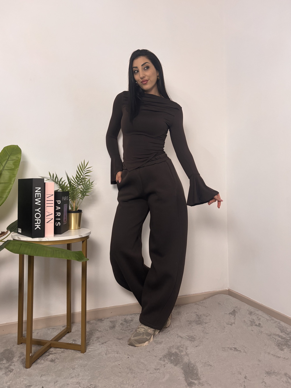 Pantalone baloon felpato con elastico in vita.