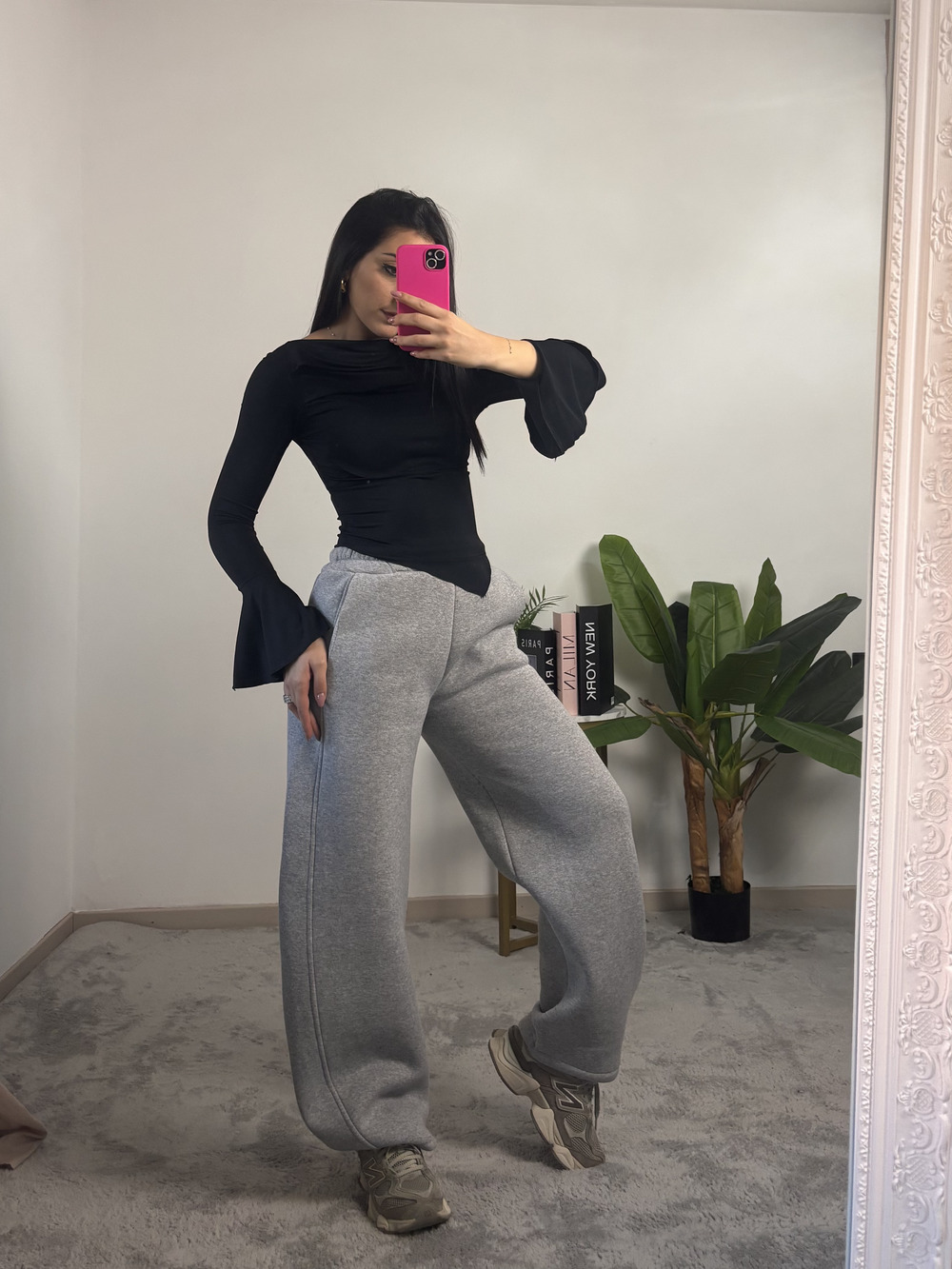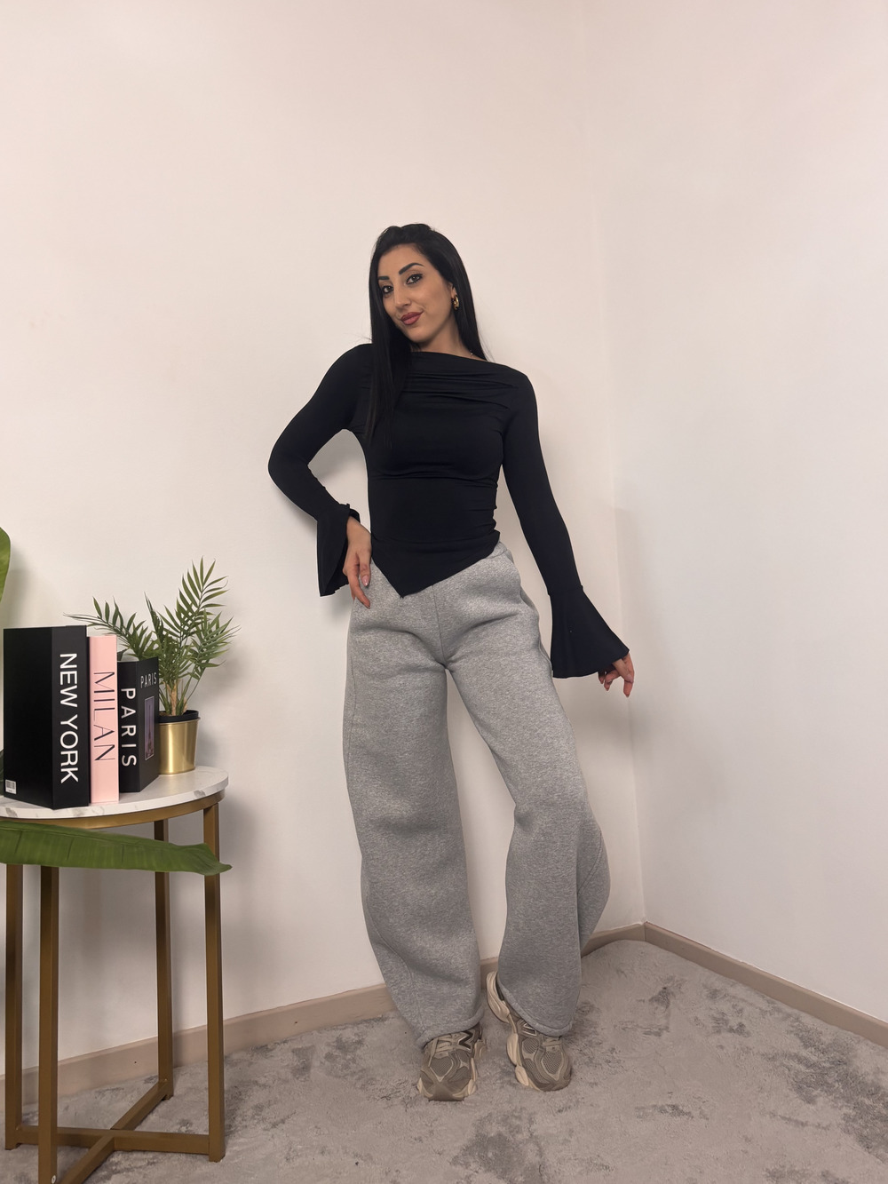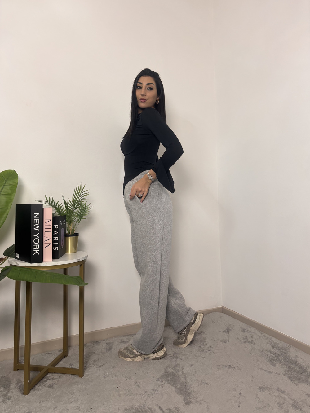 Pantalone baloon felpato con elastico in vita.