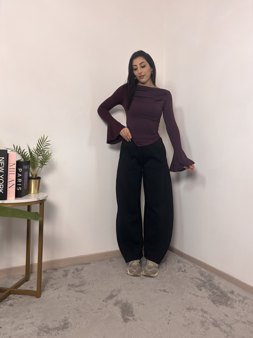 Pantalone baloon felpato con elastico in vita.