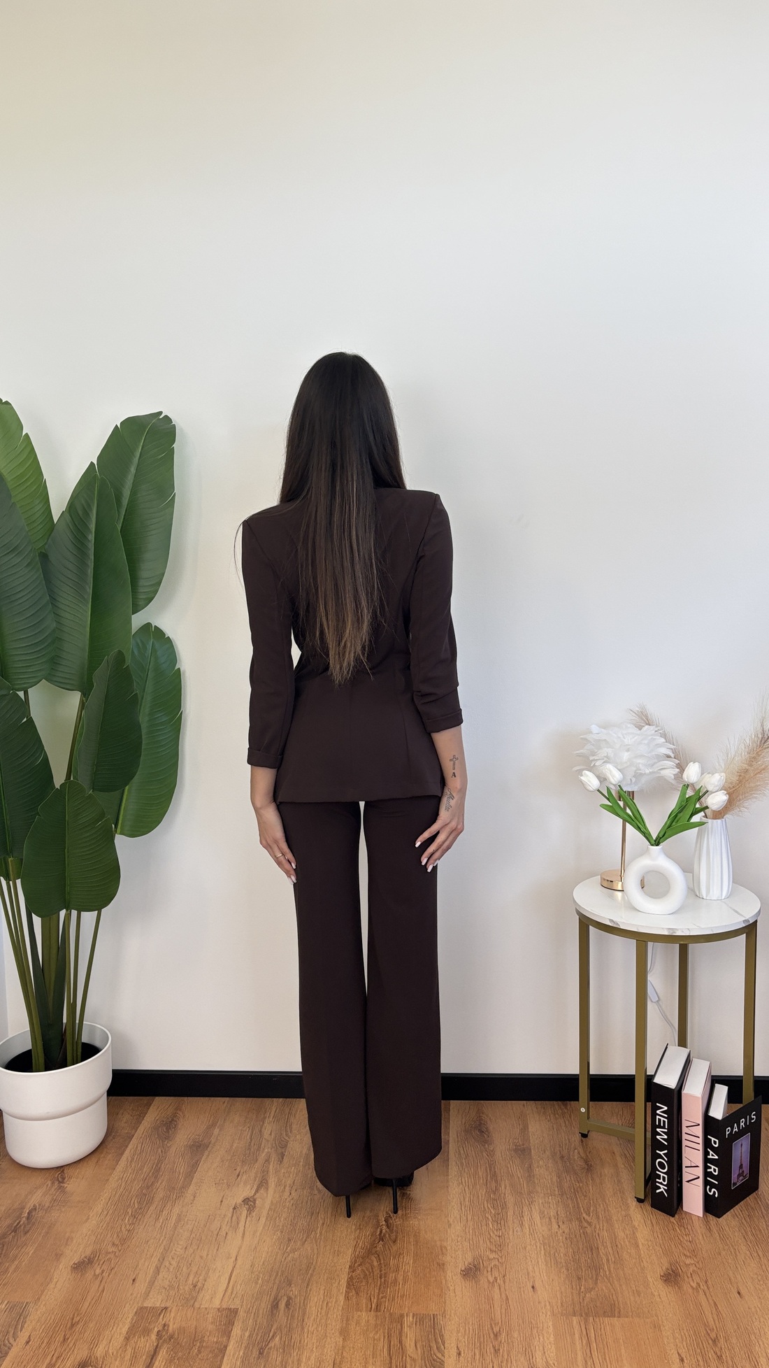 Pantalone leggermente a zampa con dettaglio in raso dietro.