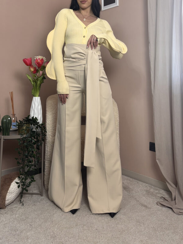 Pantalone rosa chiaro a vita super alta, modello a palazzo.