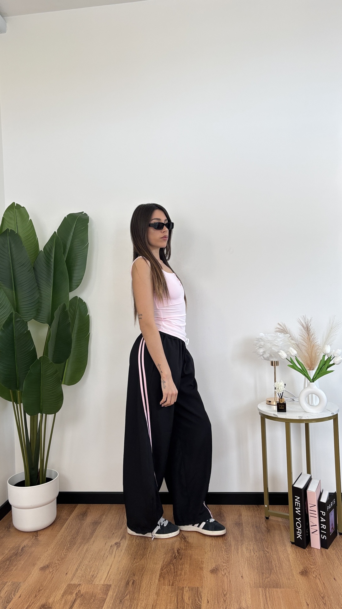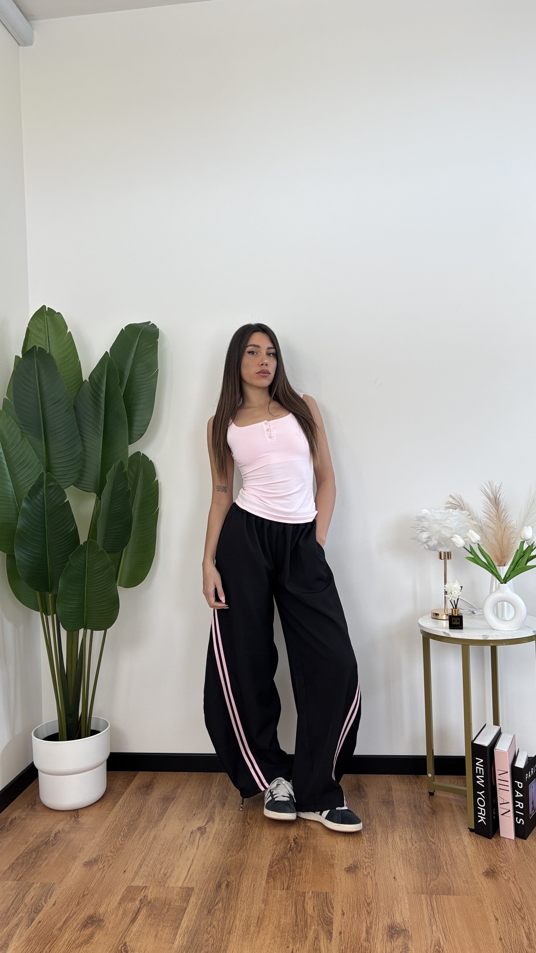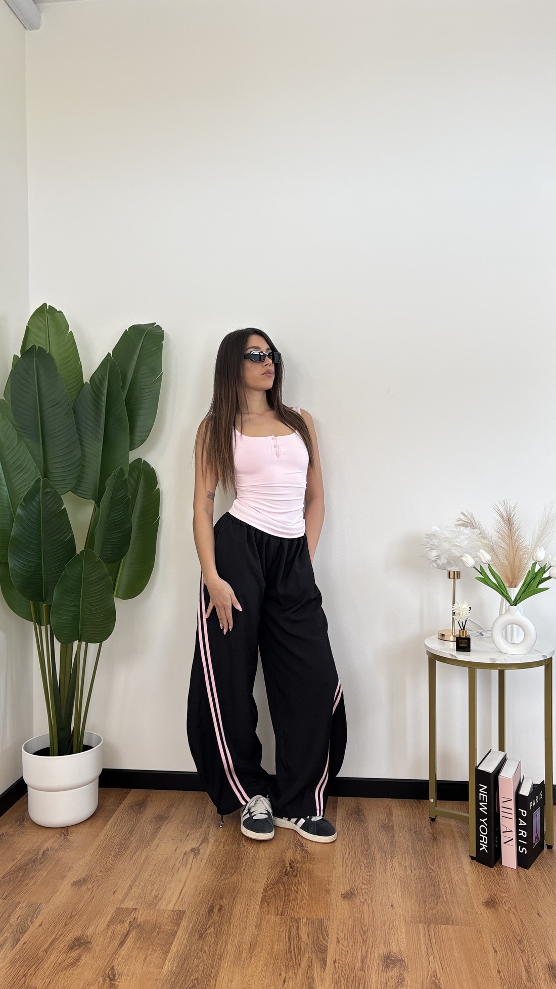Modello baloon con doppia banda colorata e coulisse in fondo.