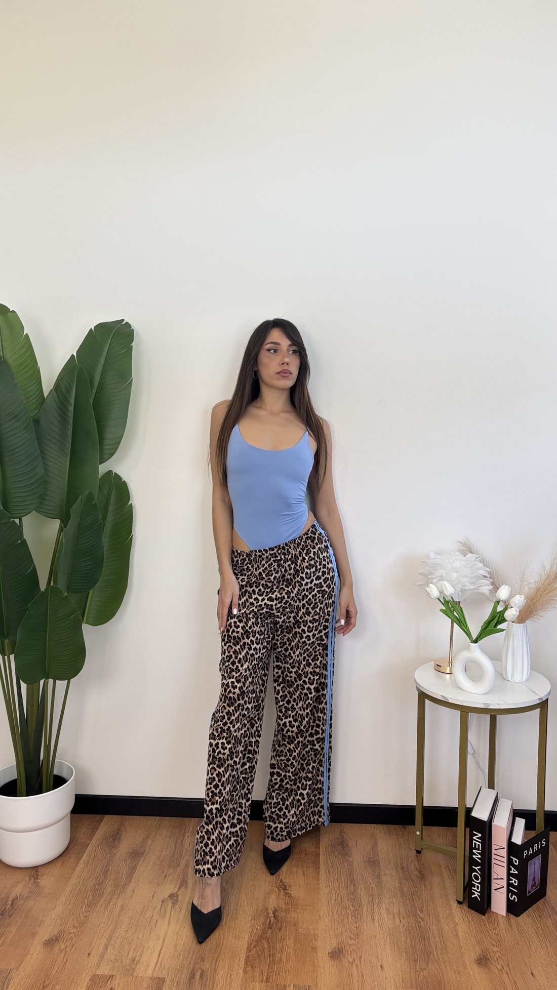 Pantalone a palazzo con bande laterali.