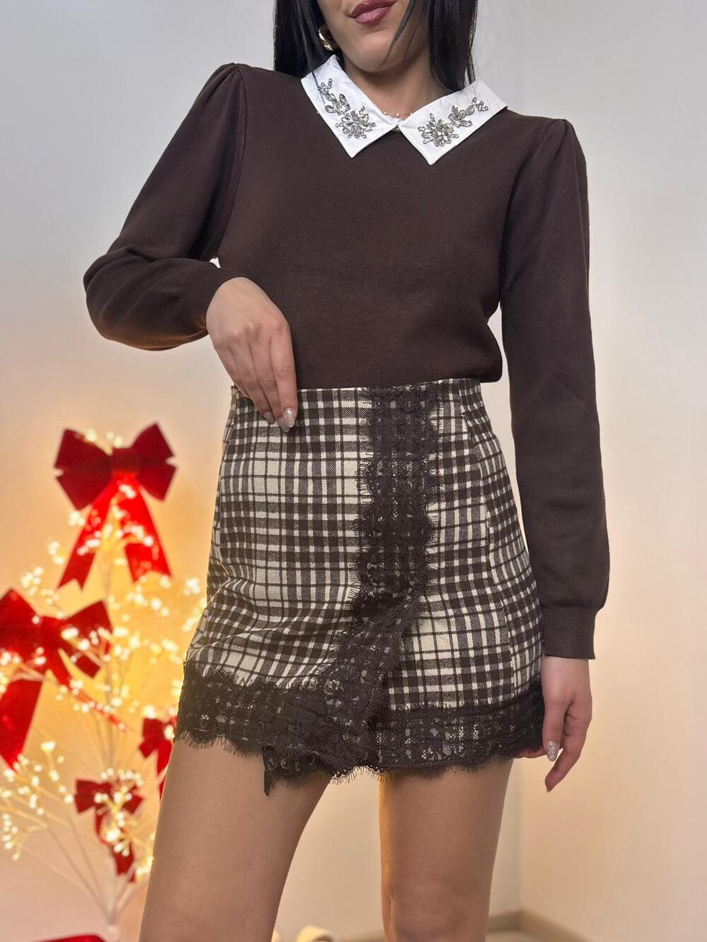 Maglioncino con colletto e dettagli in strass e pietre