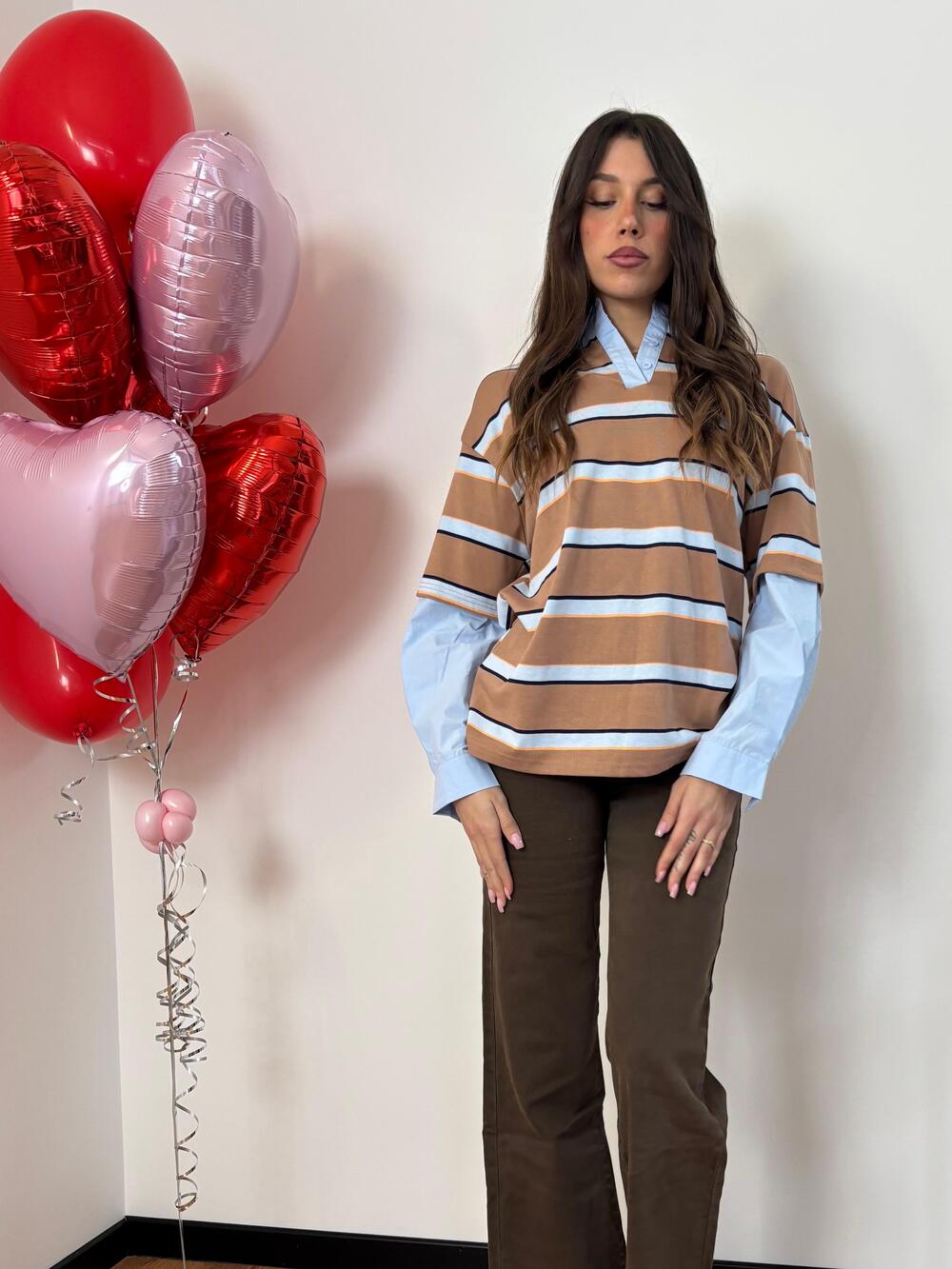 Maglia con camicia a righe.