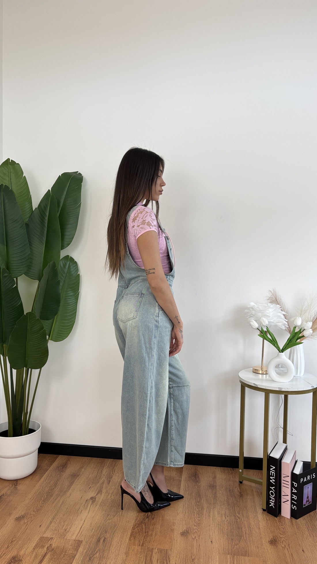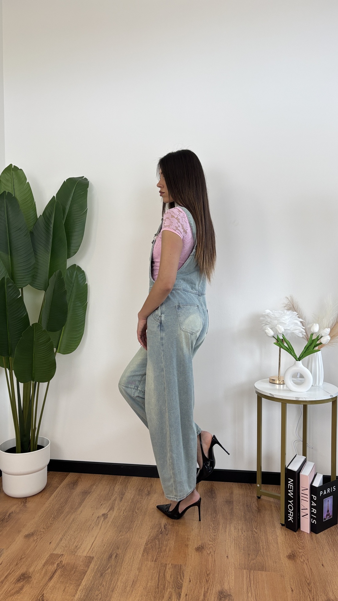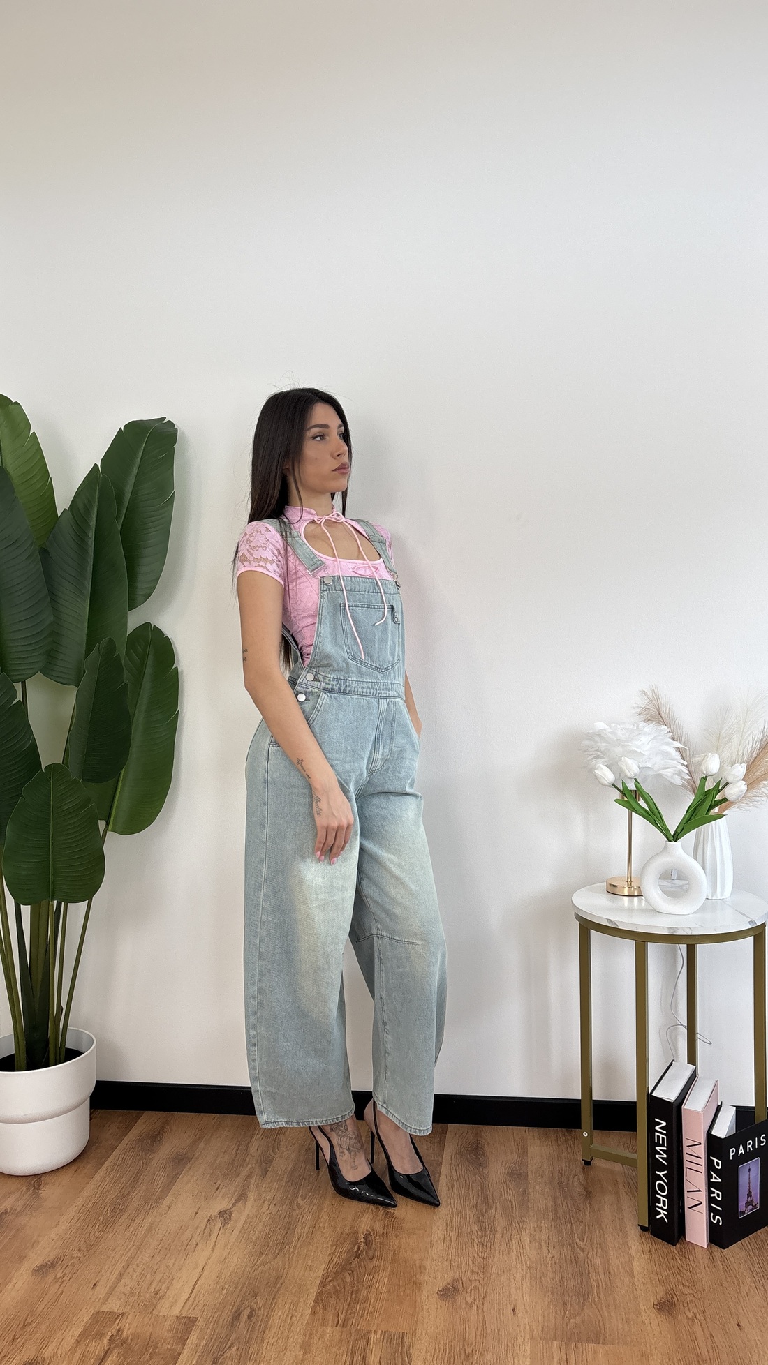 Salopette in denim chiaro, modello baloon.