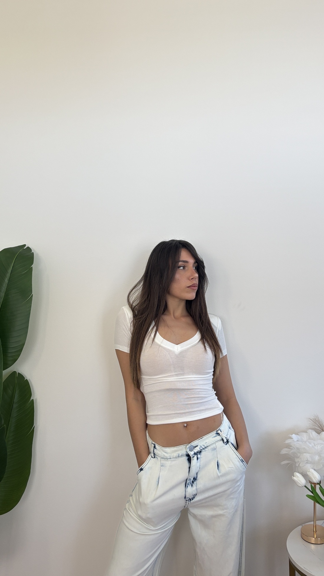 T-shirt basica con scollo a V e spalline imbottite.