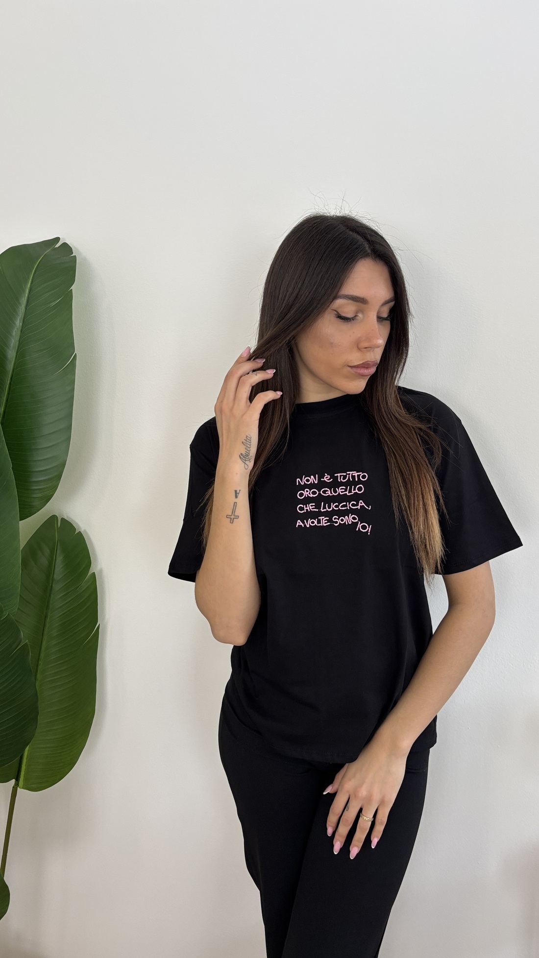 T-shirt con scritta: “NON E’ TUTTO ORO CIO’ CHE LUCCICA, A VOLTE SONO IO”