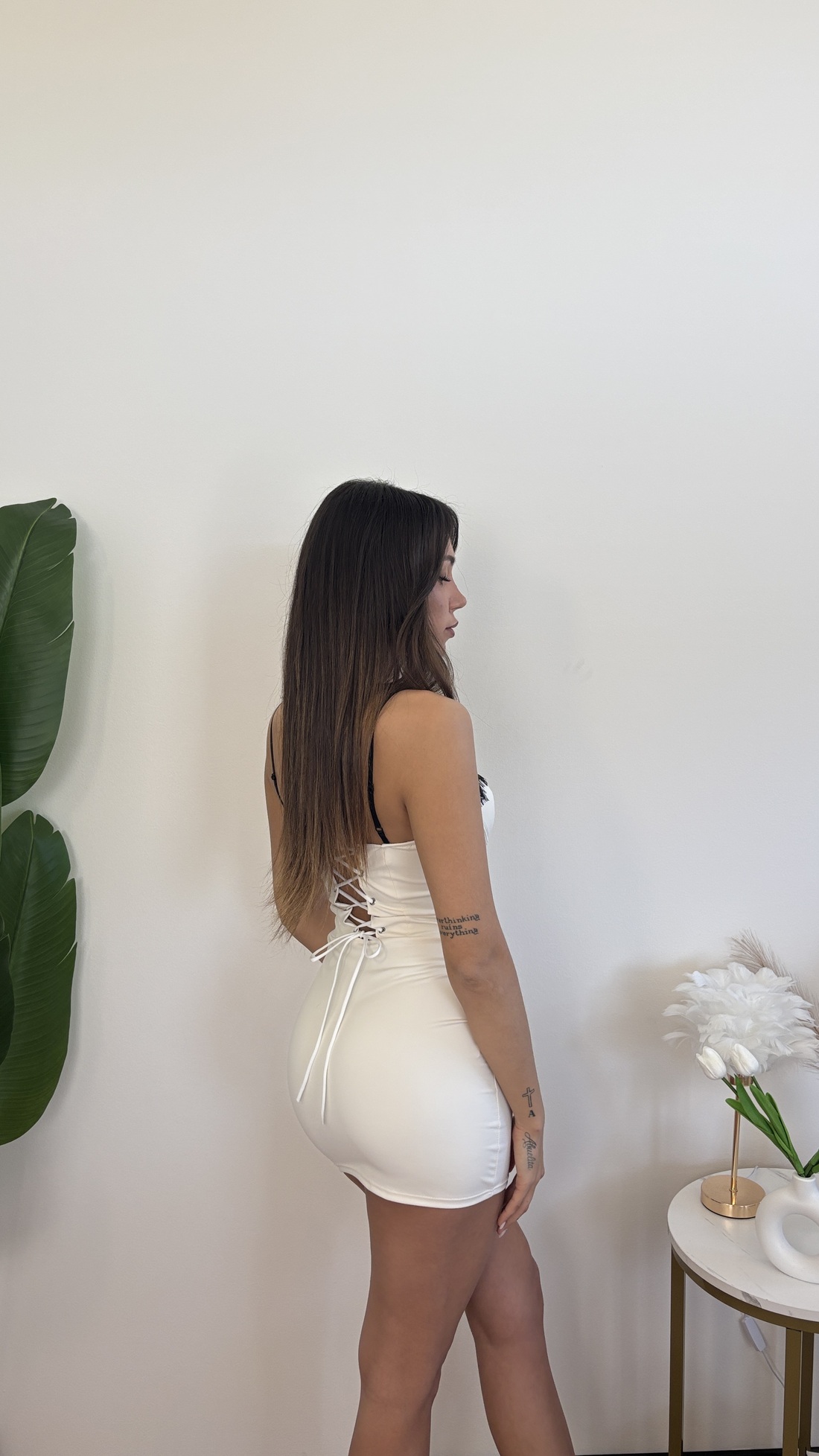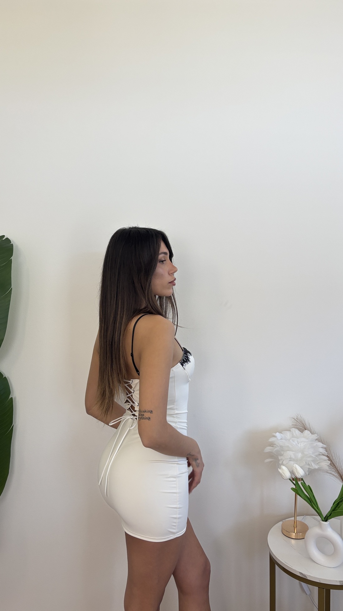 Tubino con spalline regolabili e pizzo sulle coppe.