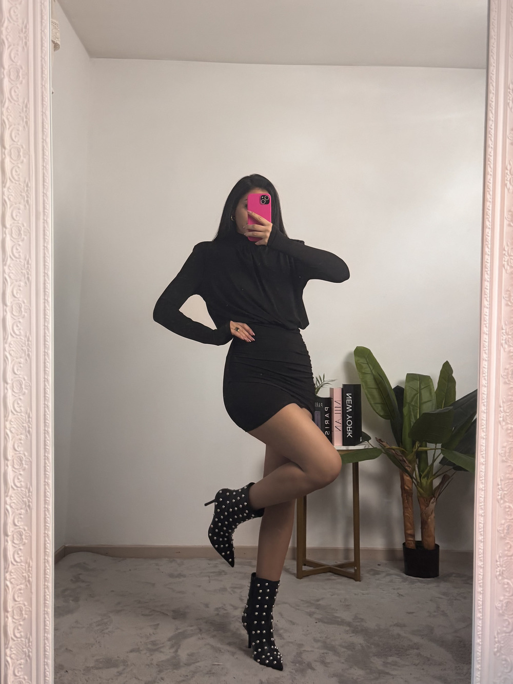 Tubino in lycra con spalle imbottite e a maniche lunghe.