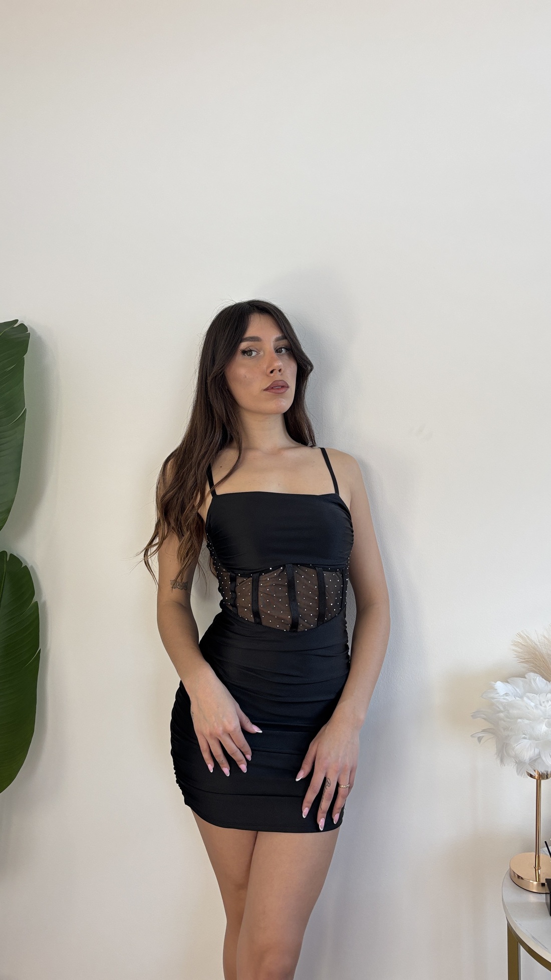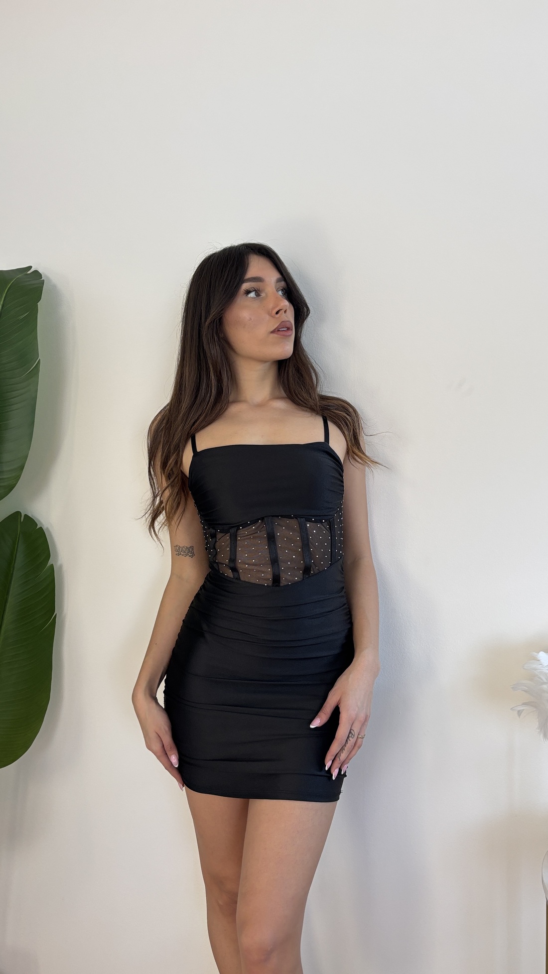 Tubino con voile e strass.