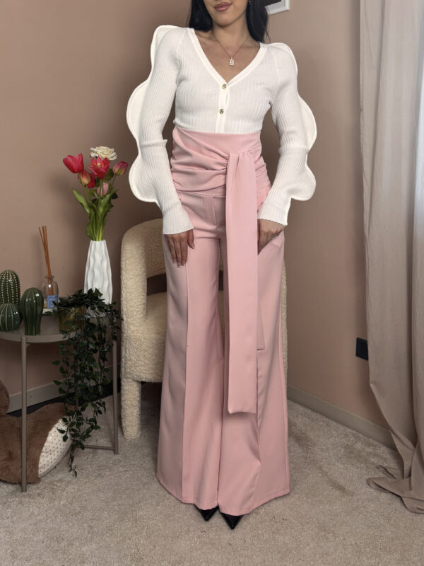 imbottita nel seno, regolabile con laccetti sul dietro, pantalone a zampa