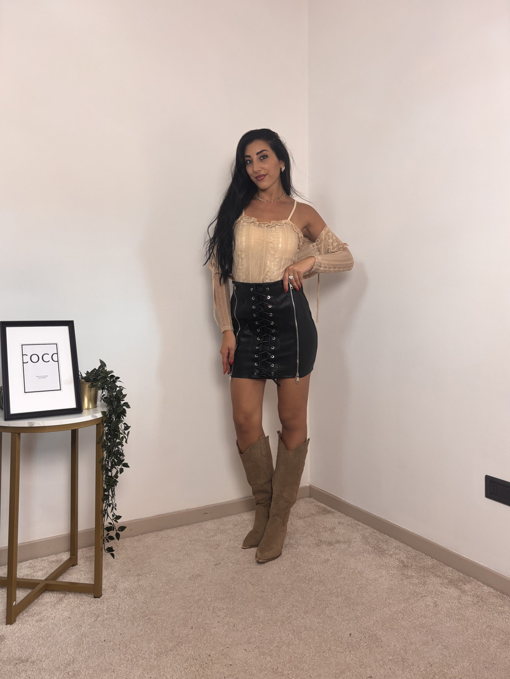 Corsetto in pizzo e coprispalle in pizzo.