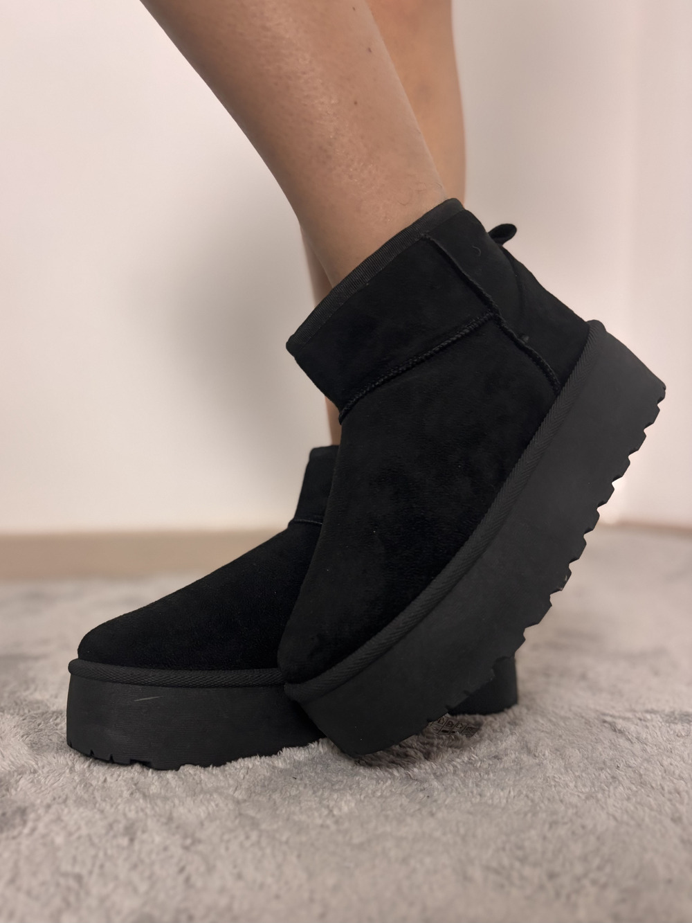 Stivaletto simil Ugg con pelo interno e platform.